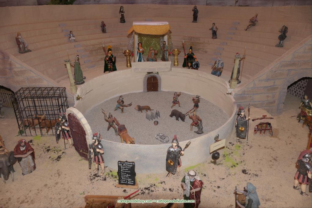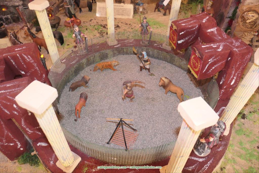 Hay más novedades, de las que una está relacionada con el párrafo anterior, pues por primera vez hay una figura que representa a una figura (un pastor proporcionado a través de la Fundación ‘Prometeo’ de Torre Pacheco) con discapacidad visual. Las restants son el aumento de luces en más edificaciones y rincones del montaje. También que se haya potneciado la lucha de gladiadores en el anfiteatro romano y la readaptación como gran almacén de víveres de una edificación egipcia.