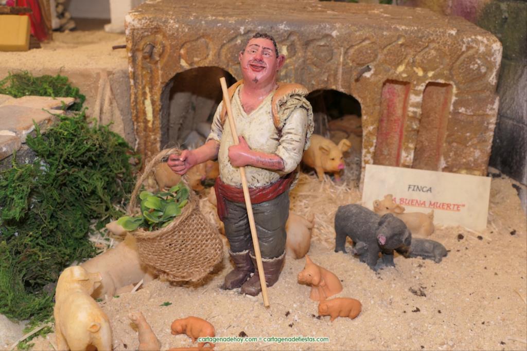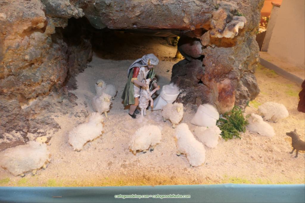 Francisco Pastor, Álvaro Fausto, Antonio Martínez, José Manuel Ayuso, José María García, Antonio Sánchez Pérez y Josiko, el equipo de ‘buenos pastores’ que (junto a Vicente Martín, nueva incorporación) ha levantado el monumental Nacimiento sufrieron el pasado mes de enero la pérdida de Juan Forte Cánovas, otro puntal del equipo, pero no ha impedido que hayan querido seguir sintiendo su compañía con el otorgamiento del título ‘El buen pastor honorífico’ y su presencia simbólica en el montaje. Juan Forte era militar de profesión y, como artillero, prestó en su día servicios de guardia en la Batería de Cenizas, donde se ha habilitado una garita en forma de bala de cañón con un militar ante ella, que es el recordado amigo. En este caso, está montando guardia Jesús, María y José, pues en la batería es donde se encuentra el Nacimiento central.