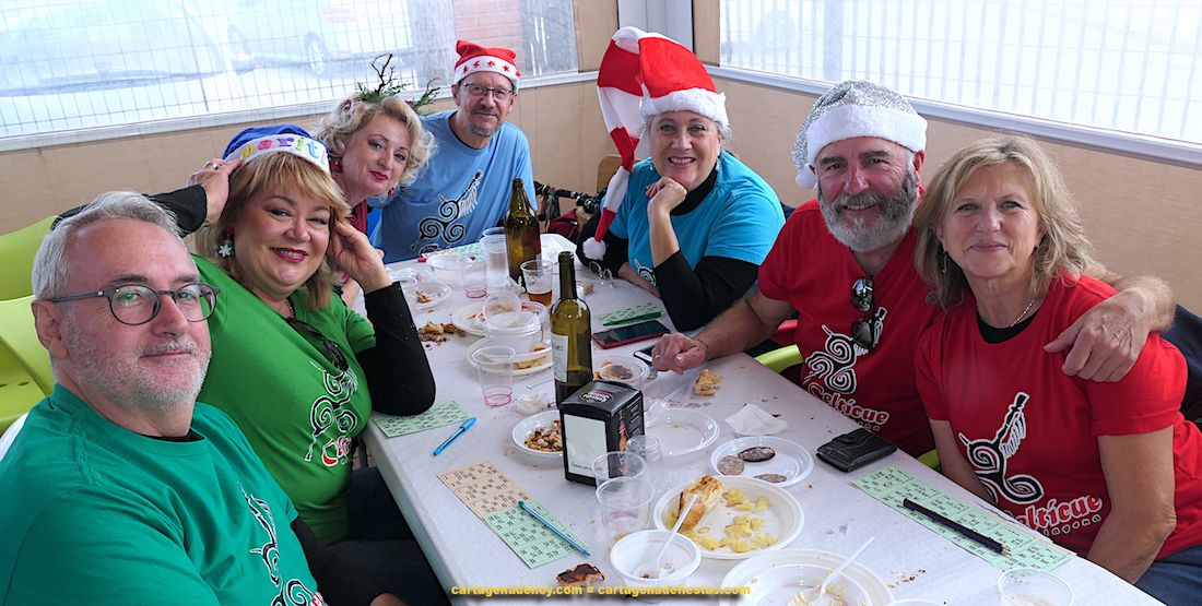 Antes, en la plaza ‘Nueva’ (ya no tanto), tuvo lugar la inauguración del pino a cargo de Pepe Aranda, en un acto animado por la banda de gaitas y percusión ‘Celticue’. Luego, almuerzo de convivencia con los productos gastronómicos que llevaron los asistentes además del caldo con pelotas elaborado por la asociación vecinal, un gran arroz elaborado en dos paelleras, otros productos que brotaban de la cantina y, además de sorpresas, un ambiente muy majo y muy de espíritu navideño.