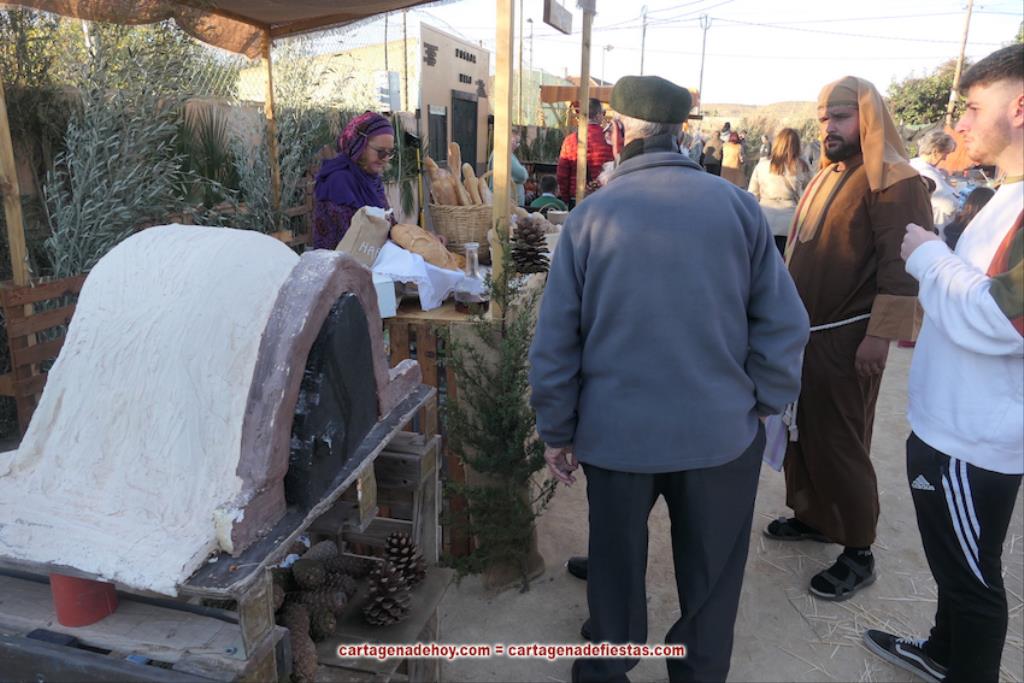 La visita resulta muy agradable, pues las ‘figuras’ humanas actúan en sus profesiones, incluidas las panaderas, que elaboran productos en un auténtico horno. En total, 24 puntos y 60 personas hacen posible este gran atractivo belenístico, que a partir de este lunes también contará con la incorporación del castillo con soldados romanos.