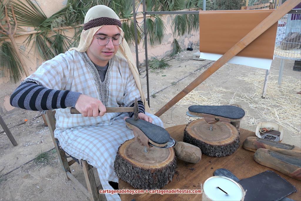 Antonio ejerce de espartero y es que el Belén viviente de Galifa es también un homenaje a los oficios, la gran mayoría de ellos ausentes en los tiempos actuales. Se puede ver a gente trabajando en la herrería, zapatería, panadería, carpintería, pescadería, frutería…, a lo que se suman las tejedoras. A todo ello se suman la oficina de empadronamiento, la posada, el tabernáculo y, entre otros, el espacio del río con el puente y las lavanderas. Como sucedía antaño, no faltan las granjas con auténticos conejos, cabra y poni. El epicentro del Belén es, como es obvio, el nacimiento de Jesús, siendo un pequeño de 10 meses de tiempo y de nombre Cayetano quien lo representa en el pesebre.