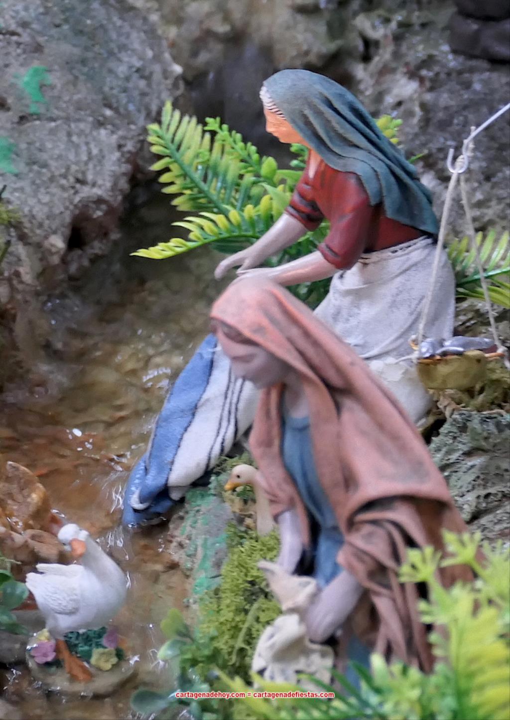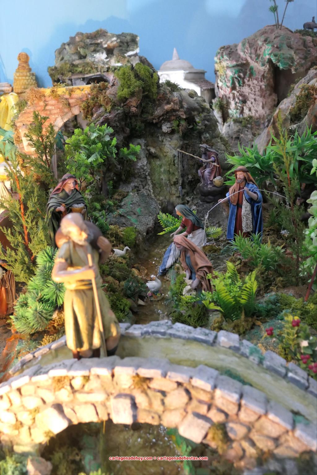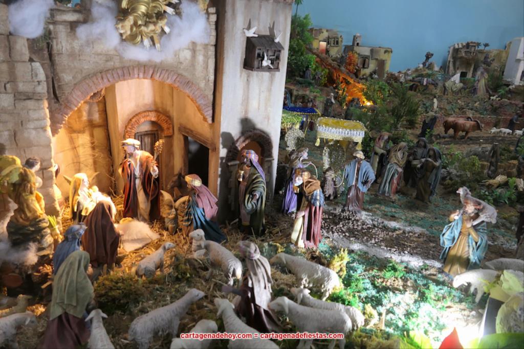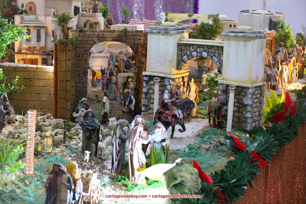 Cada año ofrece novedades por rediseño de escenarios o incorporación de nuevas escenas. Este año se han incorporado unas diez figuras y son las principales innovaciones la adoración de los Reyes Magos y el descanso de María y José en la zona de Egipto, explica José Lisón, a quien se observa entre el presidente de la asociación de vecinos, Juan Gómez Ayala, y la edil Cristina Mora en la tarde que se inauguró.