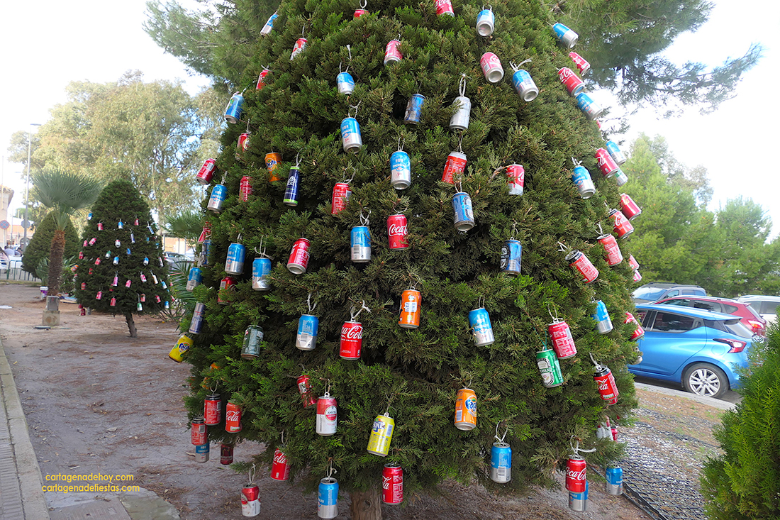 Leer más...Dos árboles con coloridos botes de bebidas como singulares adornos en la calle Isaac Peral de El Llano del Beal, que han montado vecinos del pueblo.