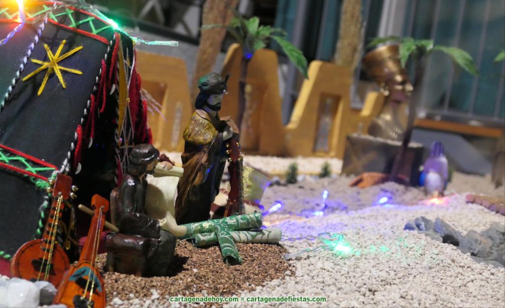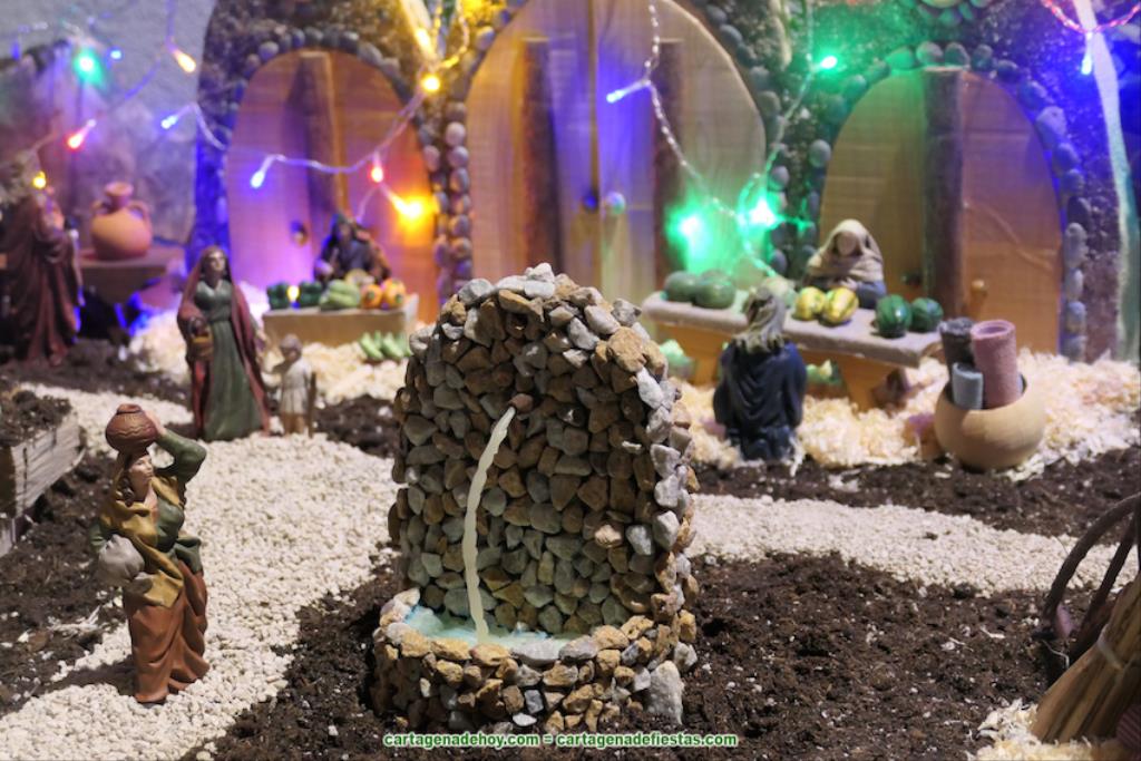 El local social de la barriada de Cartagena Norte cuenta por primera vez con un gran nacimiento navideño gracias al montaje creado, sobre una superficie de más de diez metros cuadrados y con material reciclado, de Jerónimo Blanco Sáez. GALERÍA DE FOTOS (pinchar aquí)