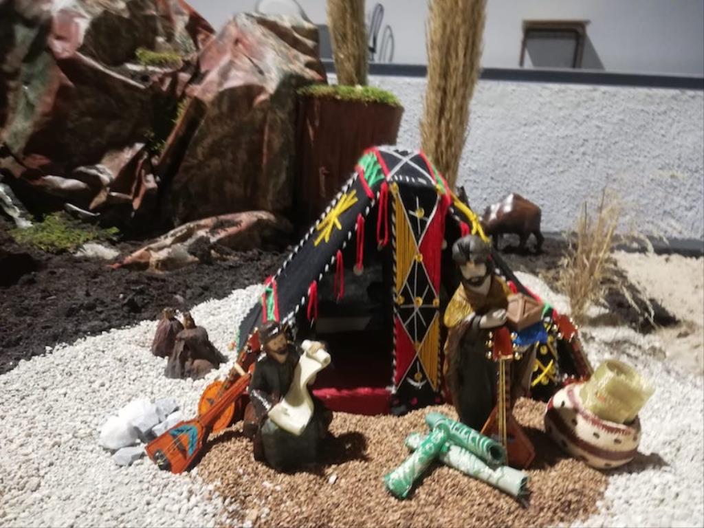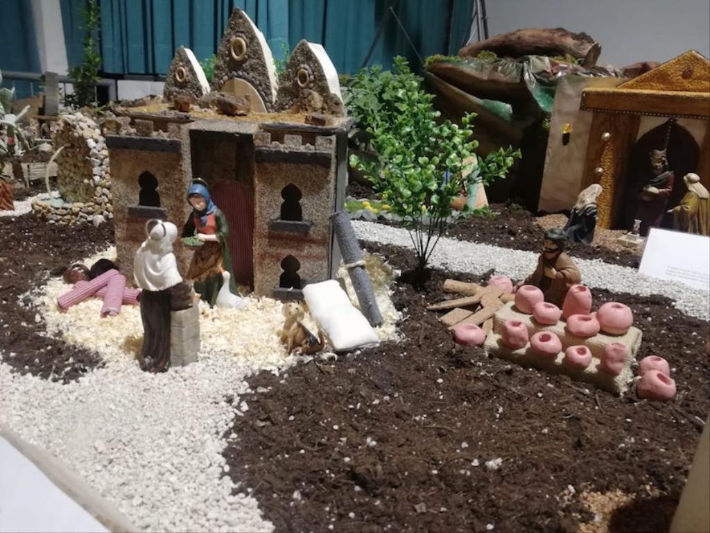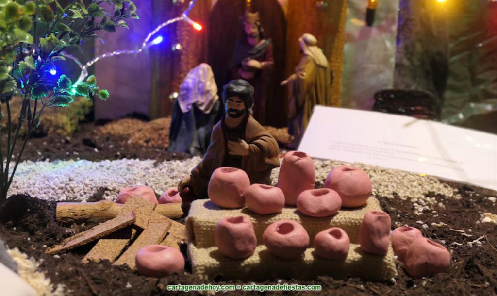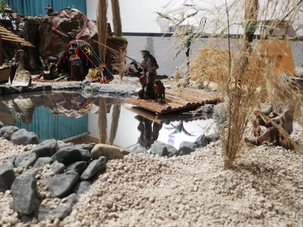 Este año se ha estrenado en su barrio, donde nunca se lo había planteado por falta de figuras. “Sin embargo, los nietos de una mujer que había fallecido me ofrecieron el centenar de las figuras que ella tenía y se ha podido montar contrarreloj, pues el tiempo se echaba encima y, aunque utilicé 45 de esas figuras, tuve que comprar otras y crear las edificaciones y la el relieve geográfico con corchos, piedras, cartones y otros elementos de forma artesanal”, explica sobre la obra creada sobre una superficie de 10 metros de largo y 1,6 de ancho. “Sólo he tenido tiempo de representar nueve de los misterios y la idea es añadir más para el próximo año”, concluye.