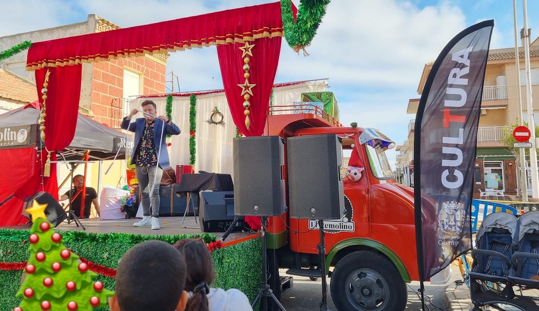 Por la tarde, el epicentro de esta jornada navideña organizada por la asociación de vecinos y el colectivo femenino Cartagonova ha sido el local social, donde se ha representado 'La duendecilla cascabel', para después llegar los Reyes Magos, culminando la tarde con una merienda.