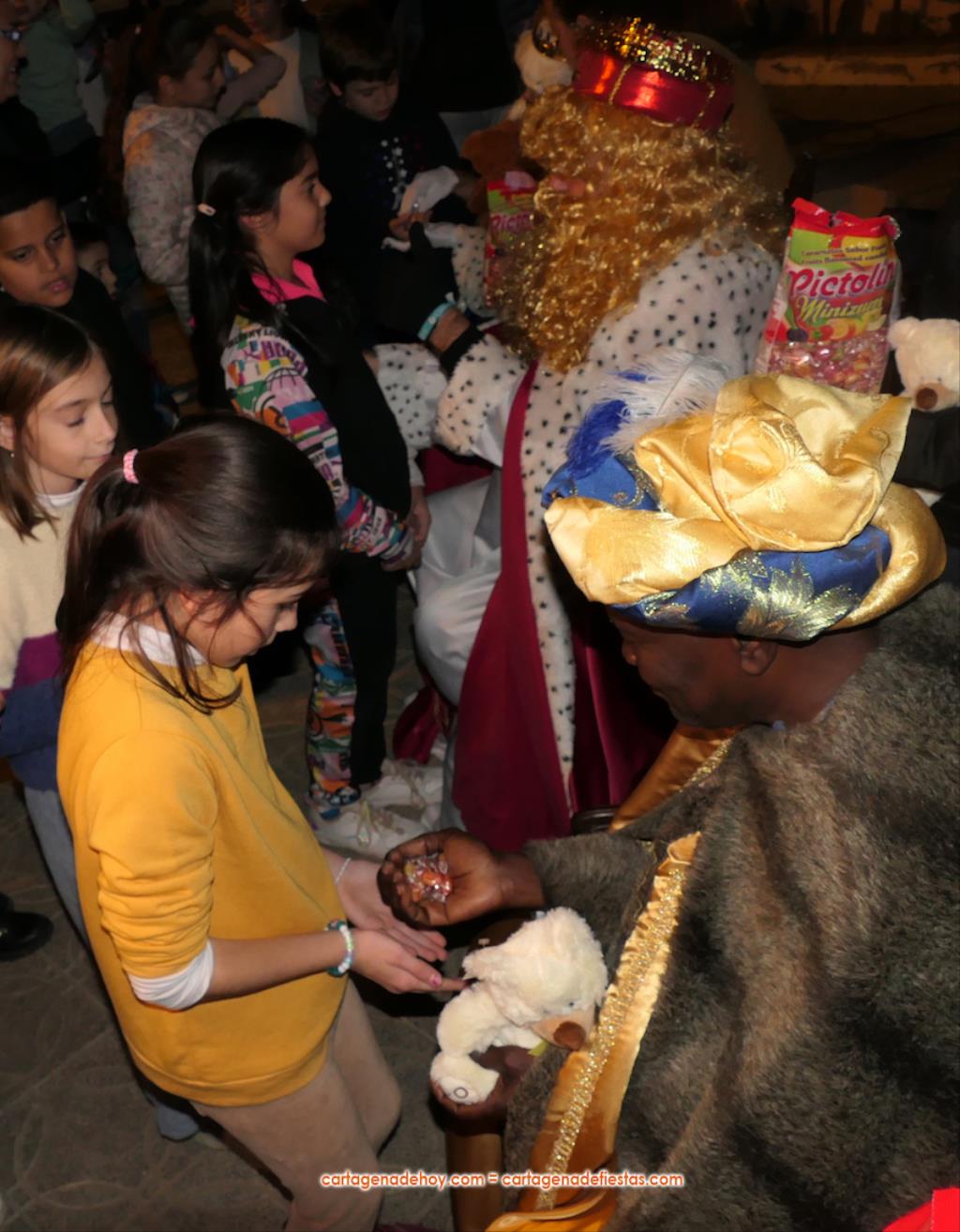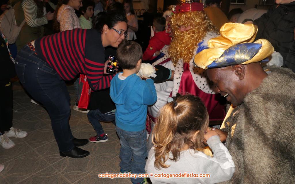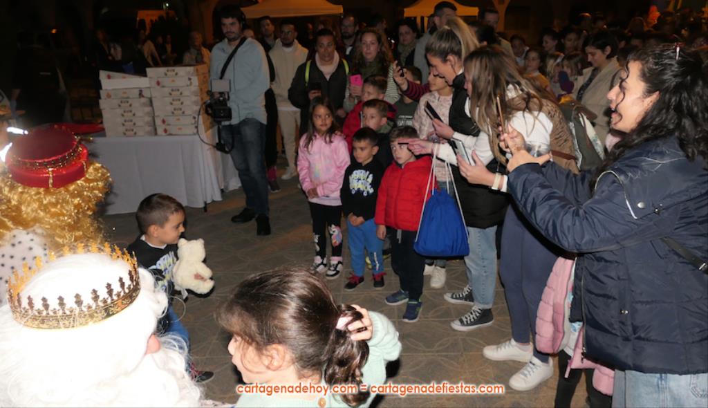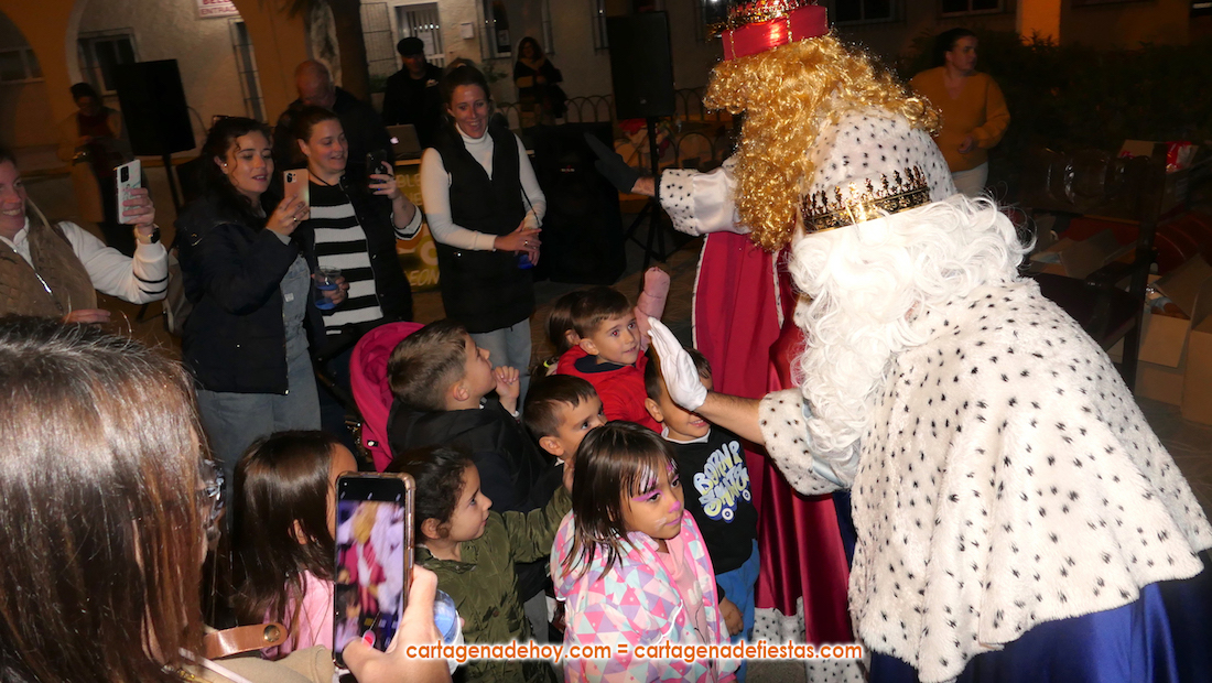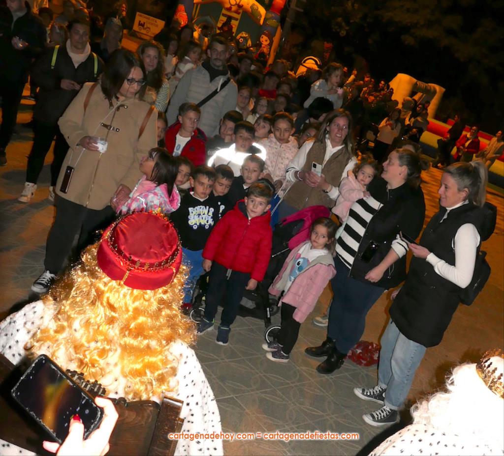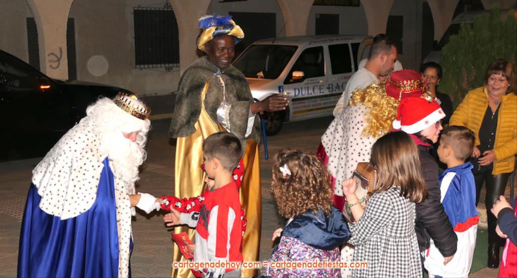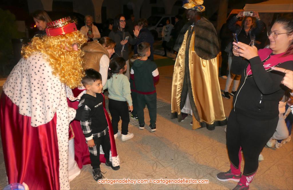 La plaza principal de El Albujón fue un hervidero de chavales (principalmente) y adultos en la tarde de Reyes Magos, que tuvo un primer capítulo con hinchables y talleres variados. Después han llegado en un turismo los grandes protagonistas de la jornada: Melchor, Gaspar y Baltasar, quienes, tras saludar (y fotografiarse) a los niños que se iban encontrando a su paso, se han sentado en sus sillones para ir recibiéndolos uno a uno y regalarles caramelos y un muñeco, siendo 250 los peluches que se han repartido. Durante ese encuentro entre los ‘magos’ y los chavales, la televisión autonómica 7RM ha conectado en directo con la plaza, lo que ha aprovechado su reportera para entrevista a los ‘reyes de la ilusión’.