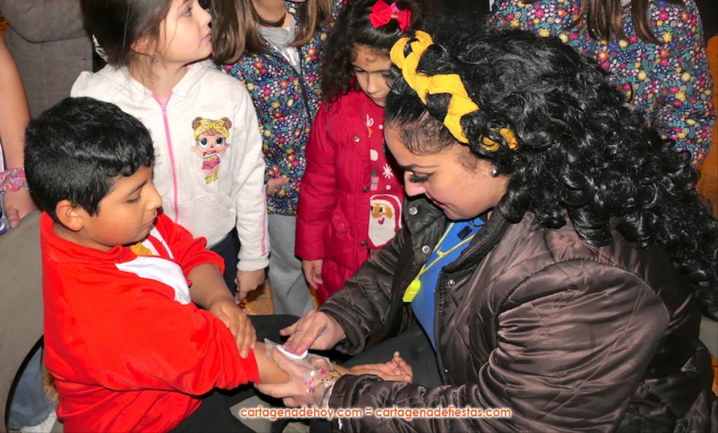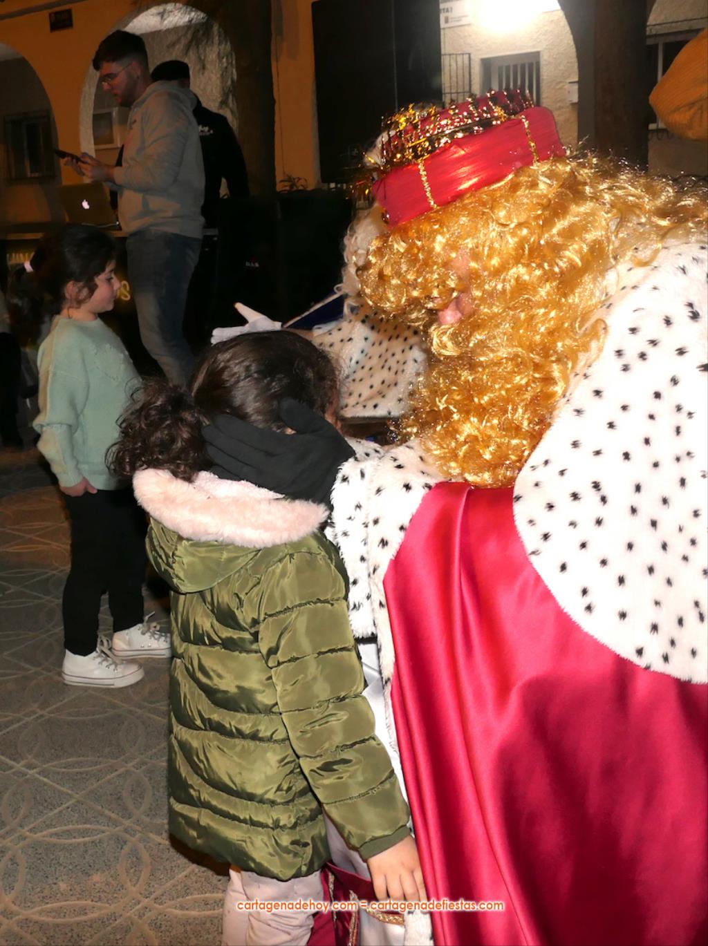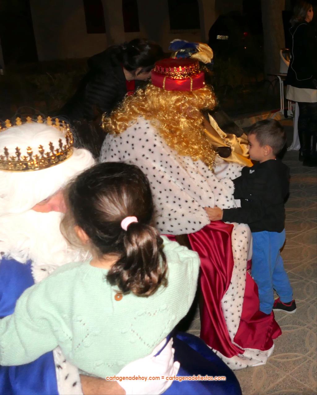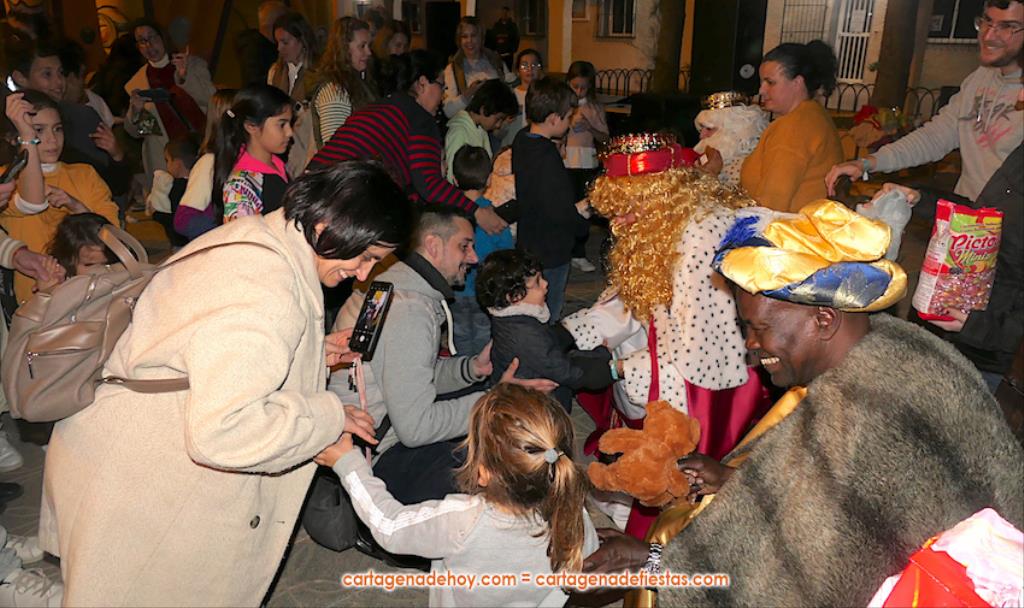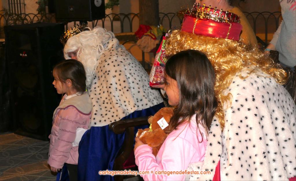 La plaza principal de El Albujón fue un hervidero de chavales (principalmente) y adultos en la tarde de Reyes Magos, que tuvo un primer capítulo con hinchables y talleres variados. Después han llegado en un turismo los grandes protagonistas de la jornada: Melchor, Gaspar y Baltasar, quienes, tras saludar (y fotografiarse) a los niños que se iban encontrando a su paso, se han sentado en sus sillones para ir recibiéndolos uno a uno y regalarles caramelos y un muñeco, siendo 250 los peluches que se han repartido. Durante ese encuentro entre los ‘magos’ y los chavales, la televisión autonómica 7RM ha conectado en directo con la plaza, lo que ha aprovechado su reportera para entrevista a los ‘reyes de la ilusión’.