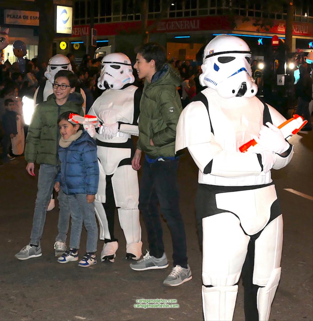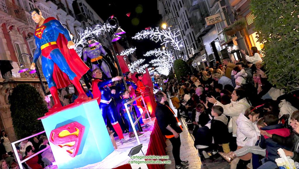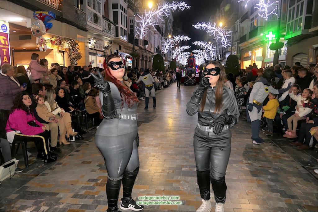 La sociedad limitada formada por Melchor, Gaspar y Baltasar cerró una cabalgata poblada de súperhéroes y famosos personajes del cine de acción e infantil que fue presenciada por bastantes miles de niños y adultos, siendo de las ediciones más multitudinarias.
