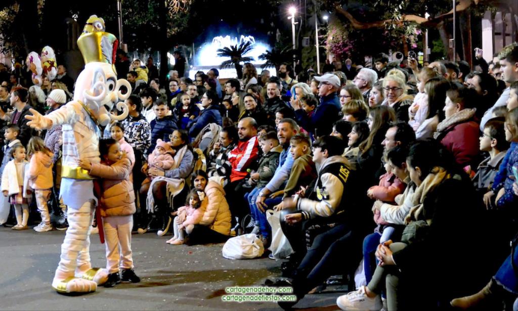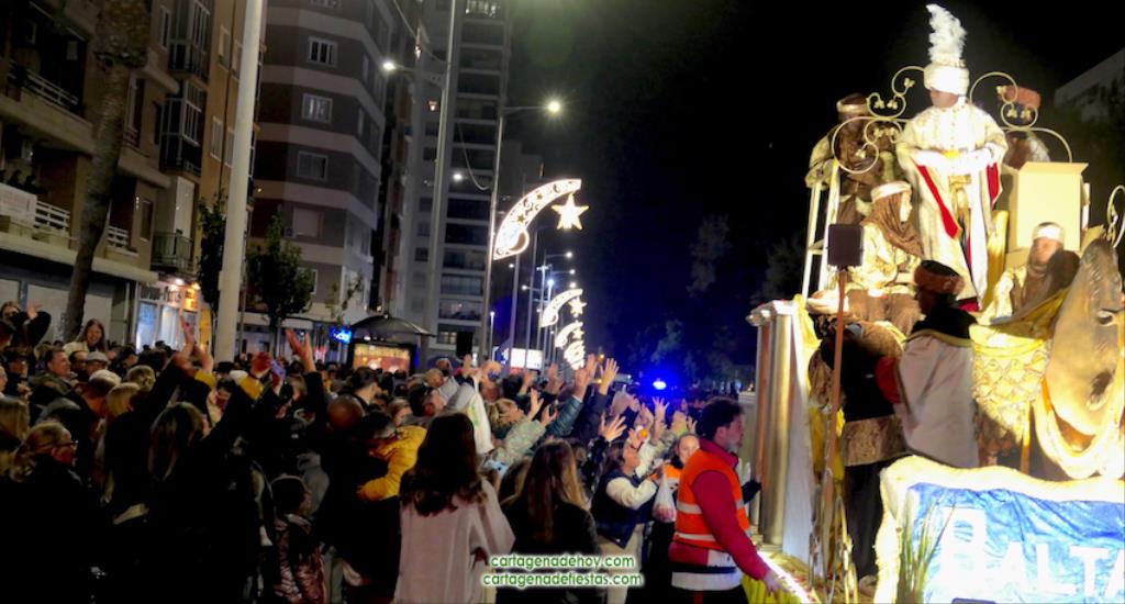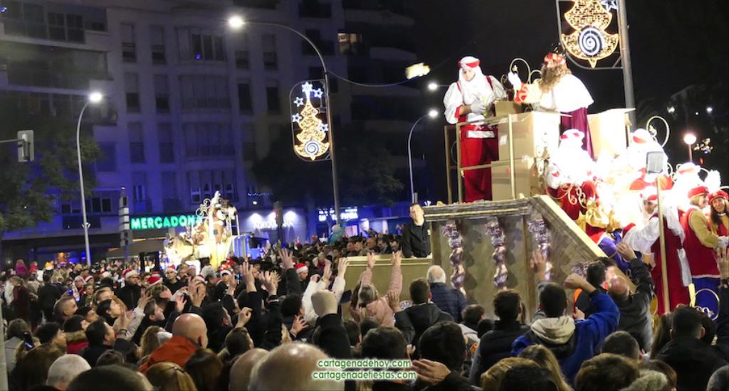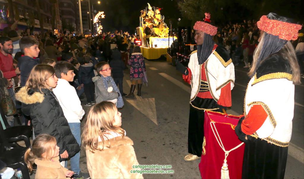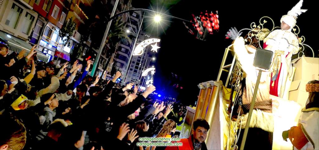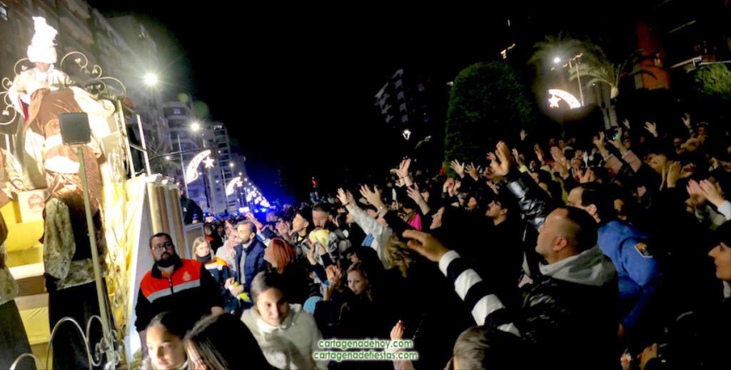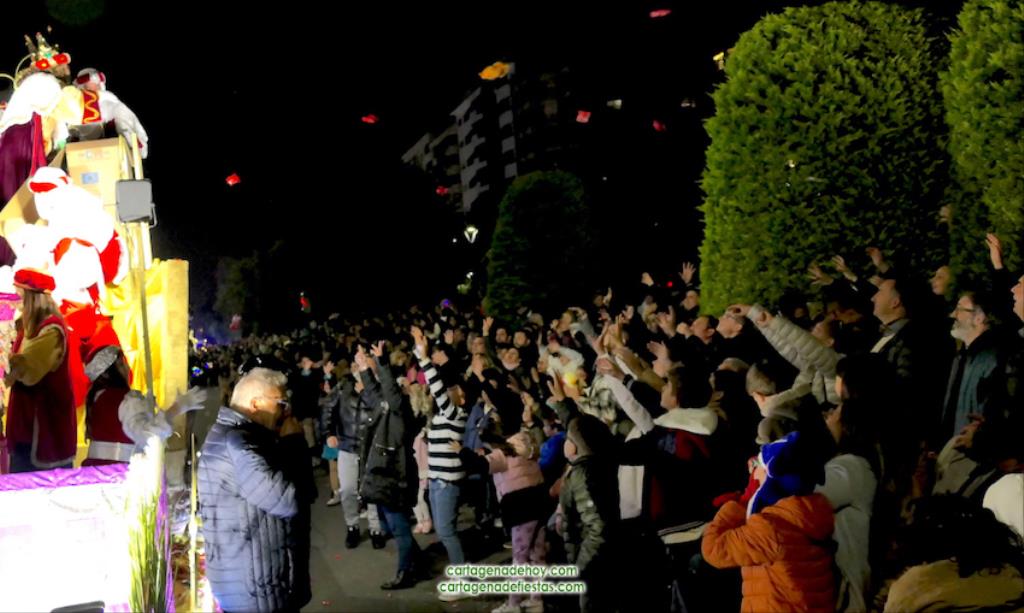 Los Reyes Magos aún forman la sociedad limitada (no admite más socios) más popular de la Navidad española pese a la irrupción del ‘yanqui Papá Noel’. Fue en 1866 cuando en Alcoy se celebró la primera cabalgata de Reyes Magos en nuestro país. Desde entonces, y salvo causas de fuerza mayor (Guerra Civil, pandemias…), es una de las grandes citas de la chavalería de muchos lugares, entre los que, como es obvio, figura Cartagena, donde la presencia de los ‘magos’ se multiplica por las poblaciones de su amplio territorio municipal, siendo el epicentro la gran cabalgata de la ciudad, que anoche regresó con todo esplendor tras el vacío de 2021 y las limitaciones de 2022. El público respondió de forma espectacular. ¿Fue el desfile más multitudinario? Es posible, pero si no lo fue, estuvo cerca con una multitud arropando a las carrozas en su recorrido por alameda de San Antón, plaza de España, calle del Carmen, Santa Florentina, Juan Fernández y paseo de Alfonso XIII. Un detalle: otra vez, las terrazas hosteleras del casco histórico a tope. La cifra de visiones se multiplicaría si tenemos en cuenta que fue ofrecida en directo por la televisión autonómica 7RM.