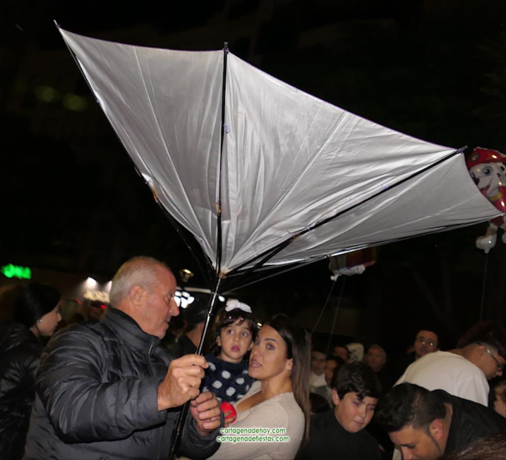 Quince carrozas de diferentes barrios y pueblos daban paso al escuadrón de cola con Melchor, Gaspar y Baltasar. Algunos de los reyes y pajes fueron encarnados por concejales, para quienes, sin duda, fue una experiencia casi única y cautivadora cruzar la ciudad en una carroza con miles de brazos levantados a derecha e izquierda para pedir peluches y caramelos, lo que no sucedía desde hace tres años. Por cierto, varios espectadores se dirigieron a este periódico para quejarse que desde muchas carrozas no lanzaban caramelos. Preguntamos a algunas y nos dijeron que les habían dado pocas cajas, agotándose enseguida. Después sí hubo derroche de estos productos con los Reyes Magos. Los datos oficiales del Ayuntamiento apuntaban a que se iban a repartir 3.500 kilos de caramelos, 69.000 bolsas de gominolas, 2.500 kilos de caramelos blandos y 40.000 peluches. Por cierto, otro detalle: en la galería de fotos se puede ver el recurso utilizado por un hombre de invertir un paragüas abierto para recoger más cantidad de obsequios.