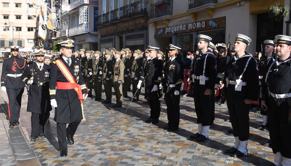 El Almirante de Acción Marítima (ALMART), vicealmirante Alfonso Delgado Moreno ha presidido esta mañana, en representación de Su Majestad el Rey, el acto celebrado en Cartagena con motivo de la Festividad de la Pascua Militar (se celebra desde 1782), que ha incluido un desfile de varias fuerzas castrenses ante el edificio de Capitanía y una recepción en el salón del trono.