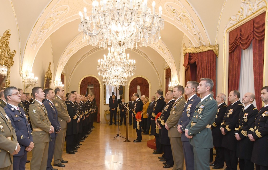 Además, una compañía mixta de honores ha realizado un desfile militar frente al edificio de Capitanía General. La Fuerza estaba constituida por una escuadra de gastadores y una banda de música, cornetas y tambores de Infantería de Marina, una sección del Regimiento de Artillería Antiaérea RAAA-73 del Ejército de Tierra, una sección del Ejército del Aire y del Espacio procedente de la Academia General del Aire, una sección de la Armada compuesta por personal de la Fuerza de Acción Marítima, de la Flotilla de Submarinos y de la Fuerza de Medidas Contra Minas, y una sección de la Guardia Civil de la 5ª Zona.