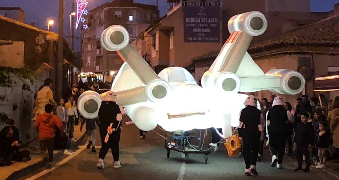 El desfile con los Reyes Magos por las calles del pueblo presentó como novedad el acompañamiento estos grandes muñecos y una nave ovni.