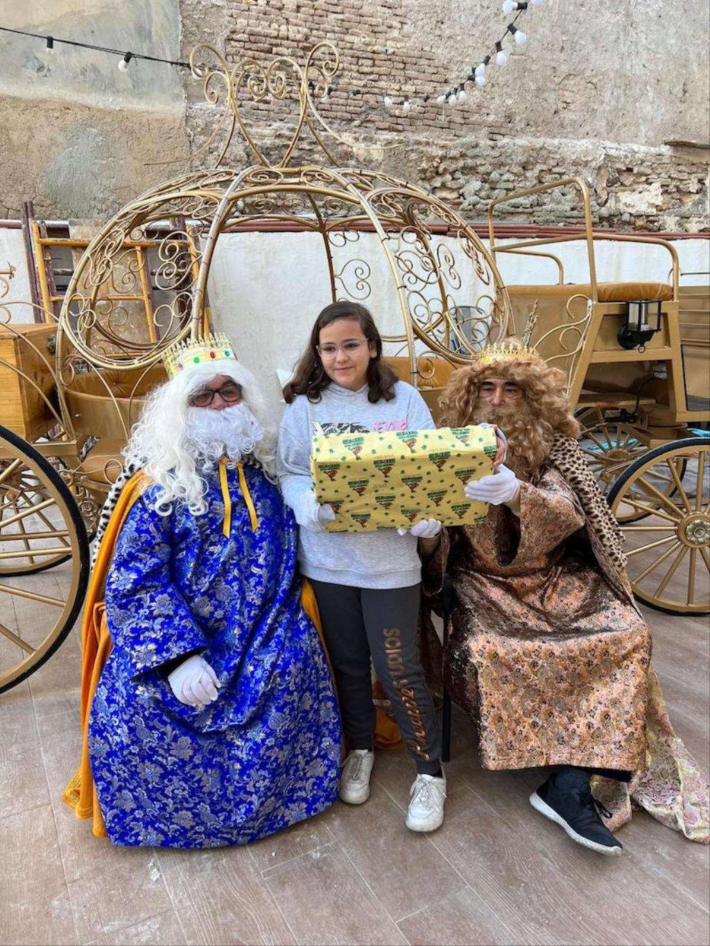 Melchor y Gaspar llegaron en la carroza real el pasado fin de semana para entregar los regalos a unos cuarenta chavales y algunos mayores, en un acto organizado por la Asociación Deportiva y Cultural 'El Pinacho'.