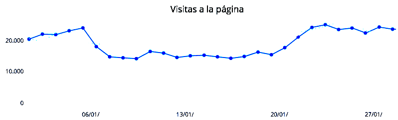 Acabamos el año 2022 con una media diaria de 21.437 lectores (entradas únicas desde ordenadores diferentes) y hemos empezado el nuevo 2023 en la misma línea, siendo las fechas con más internautas las correspondientes al final de la Navidad con las cabalgatas de Reyes Magos y los últimos días de enero en los que hemos comenzado a publicar, entre otras informaciones, noticias sobre el Carnaval de Cartagena que comienza el próximo día 10.
