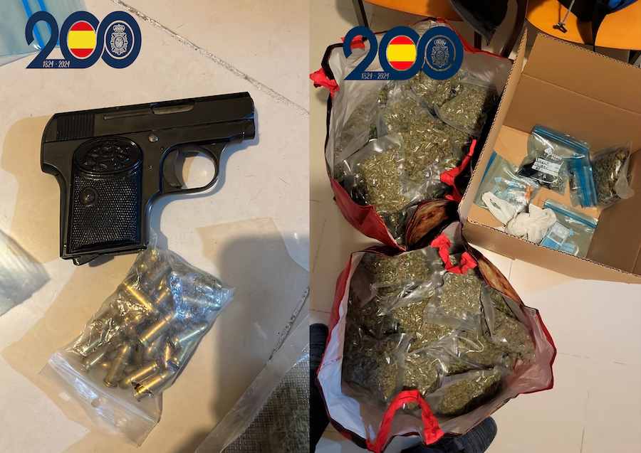 Finalmente se realizaron un total de cinco registros en viviendas de Cartagena, Torre Pacheco y Águilas, incautándose 3 kgrs. de cocaína, 6 kgrs. de marihuana, 1,5 kgrs de hachis, más de 35.000 euros de dinero en efectivo, una escopeta de cañones recortados, una pistola semiautomática, numerosa munición, así como los vehículos utilizados para el tráfico de drogas, dispositivos gps y una pistola táser.