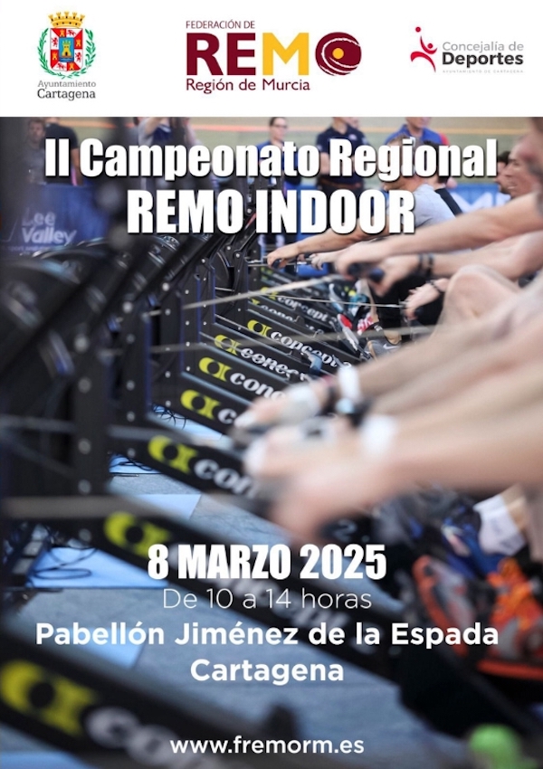 Este campeonato autonómico organizado por la Federación de Remo de la Región muestra una de las especialidades en auge del remo, el remo indoor. Contará con la presencia de más de 60 deportistas pertenecientes a varios clubes, como el Real Club de Regatas de Cartagena, el Club Náutico Santa Lucía, el Club Náutico Los Nietos o el Club de Remo Águilas.