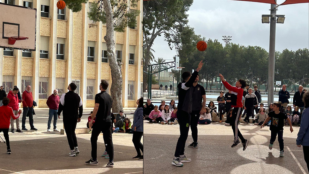 Los jugadores Álex Jordá, Asier González, Gabriel Gil y el último fichaje en llegar, Balastegui, han visitado a los alumnos del centro docente de Barriada de Hispanoamérica-Los Dolores, un lugar de larga tradición en el baloncesto. Además de compartir pista y firmar numerosos autógrafos, los representantes del 'Cebé' repartieron 470 entradas para asistir al partido del último sábado de este mes frente a Fuenlabrada.