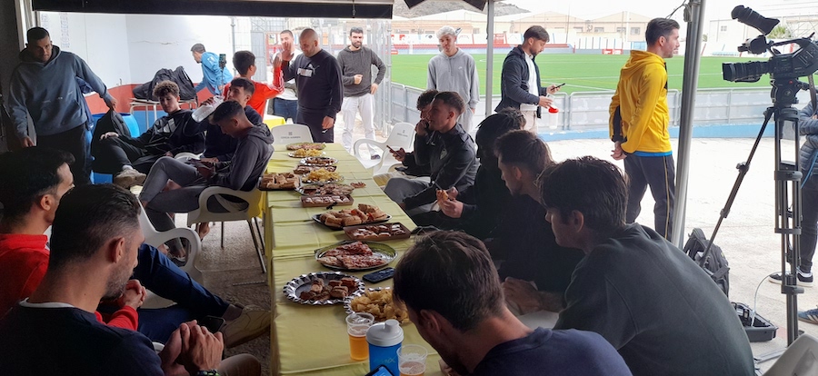 El equipo de El Llano del Beal se enfrentará al equipo de la primera división del fútbol español la próxima semana en el campo Ángel Celdrán. Será un partido histórico, pero en el club se esperaba a un rival con 'más tirón'. En la foto, los jugadores esta mañana durante la celebración del sorteo en la sede de la Federación Española. Por su parte el FC Cartagena jugará en el campo del Andorra.