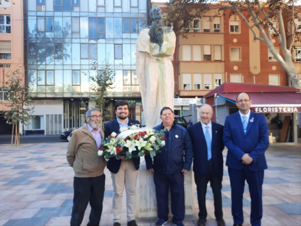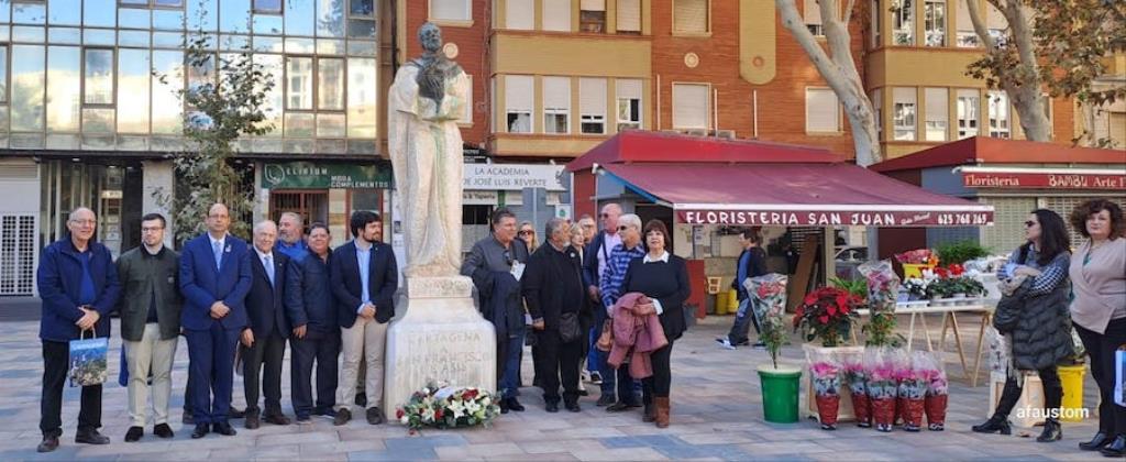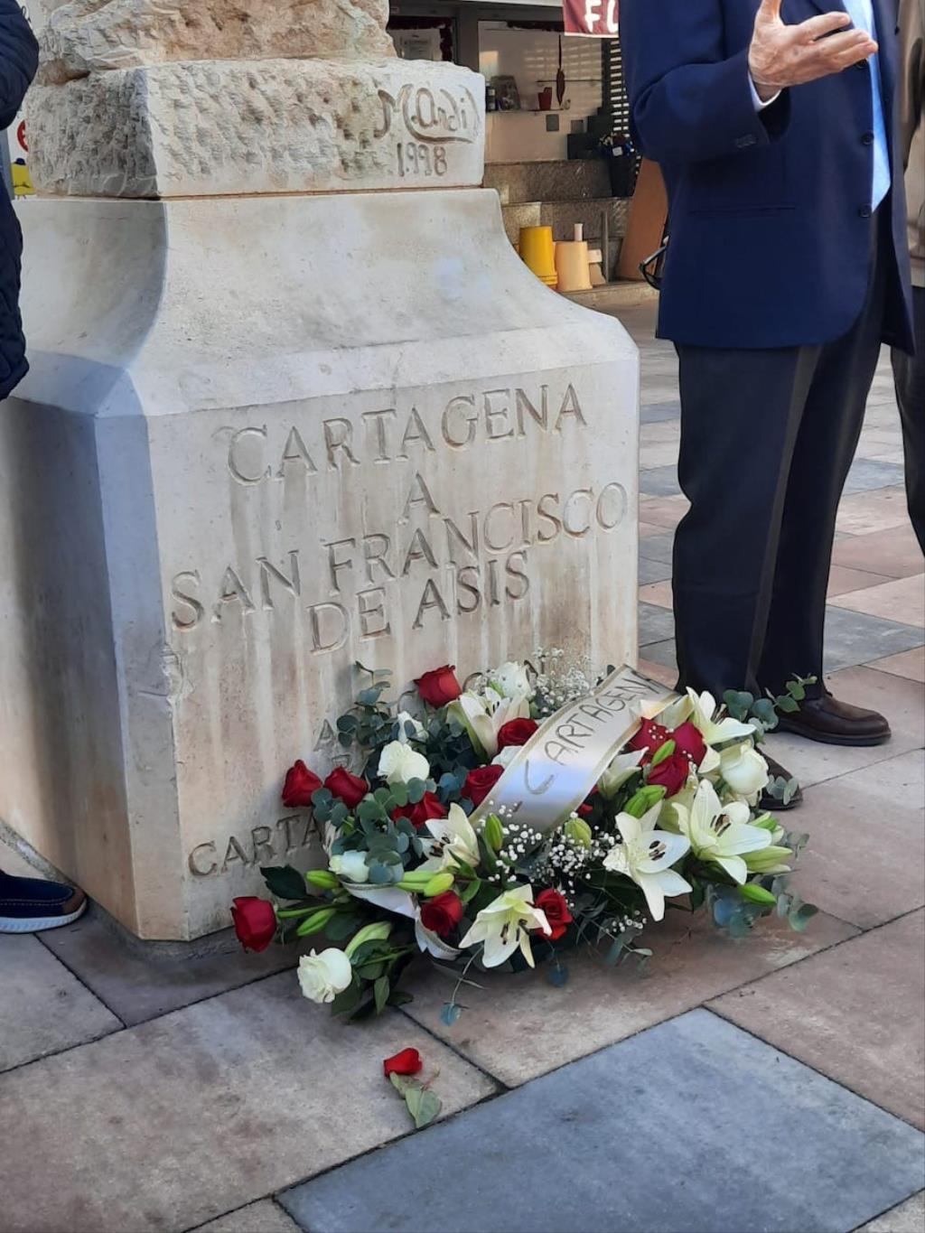 La ciudad trimilenaria fue el marco de una amena XVII jornada de convivencia organizada por las cuatro asociaciones belenistas cartageneras. En la foto, varios participantes junto al monumento al patrón de los belenes, San Francisco de Asís, en la plaza de Juan XXIII.