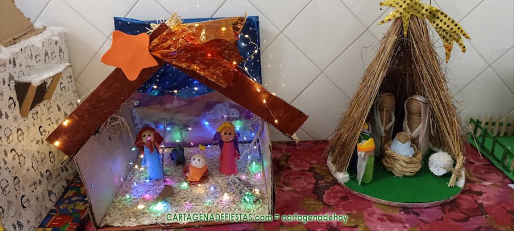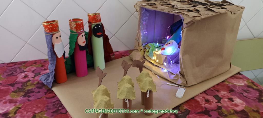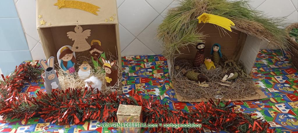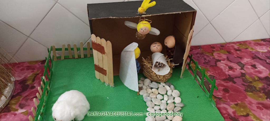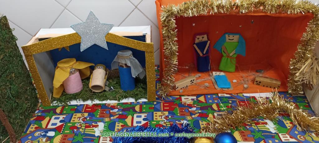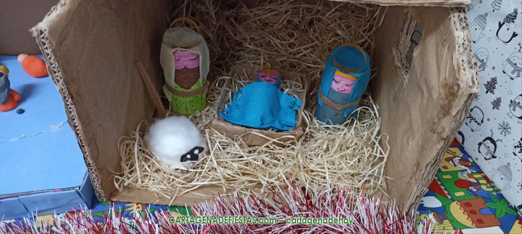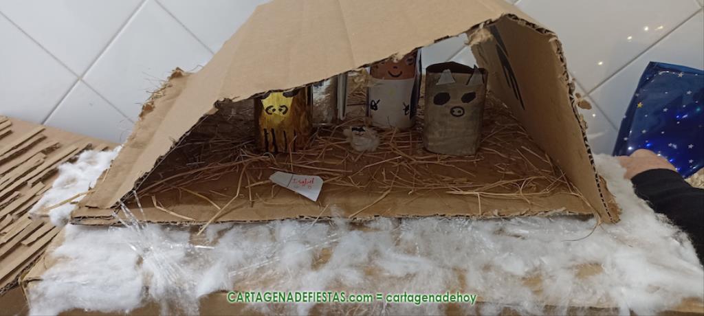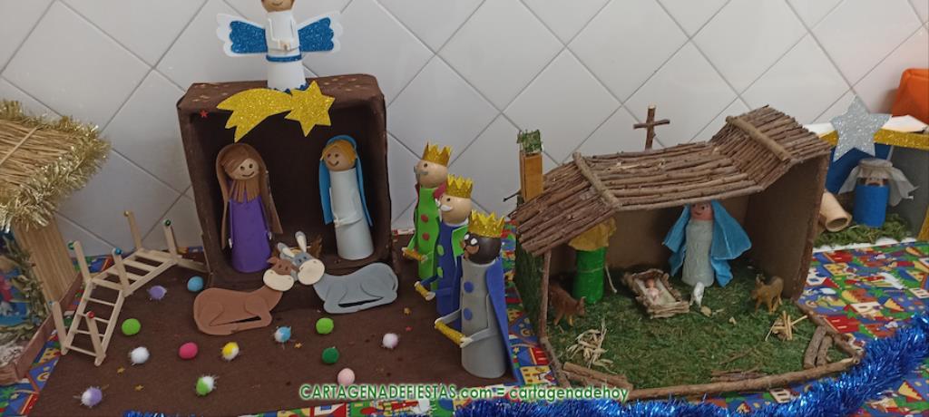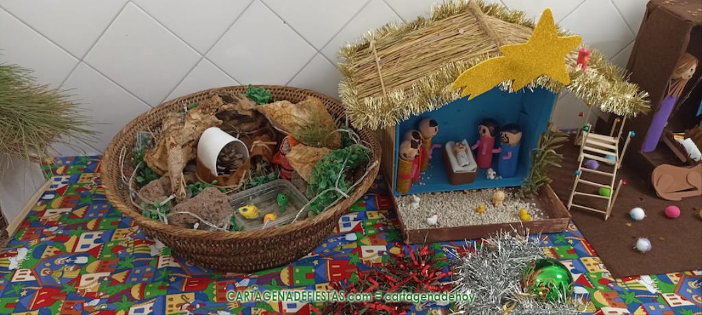El espíritu de Belén y la imaginación no sólo limita a este gran montaje, pues estos días también se puede ver una exposición de nacimientos creados por los alumnos de sexto curso de Primaria para un concurso interno surgido desde el área de Religión. Todos son elaborados por la vía del reciclaje, incluidos los personajes de la sagrada familia o de los Magos orientales. Cáscaras de huevo, piñas, trozos de madera, plastilina, paquetes de huevos, tubos de cartón... Todo vale, como se puede contemplar en varias imágenes de la galería de fotos.