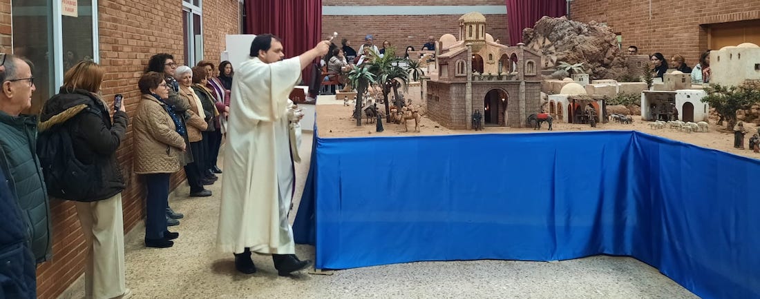 Ha sido inaugurado en un acto en el que la bendición del montaje la llevo a cabo el párroco de la iglesia de San Juan, Ramiro Ginés Ciller Alemán, y que contó con la buena música de la tuna San Juan y de la Coral Siglo XXI. El gran nacimiento se puede visitar hasta el 7 de enero.