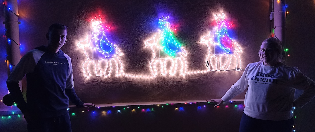 El joven, de 16 años de edad, es un enamorado del espíritu de estas fechas desde bien pequeño y cada año va ampliando el montaje luminoso que rodea su casa, habiendo alcanzado cerca de medio kilómetro de cableado con luces de colores y de imágenes en movimiento, además de instalar como antesala un árbol con dos renos.