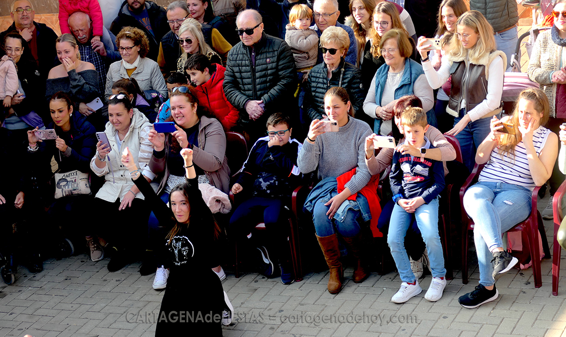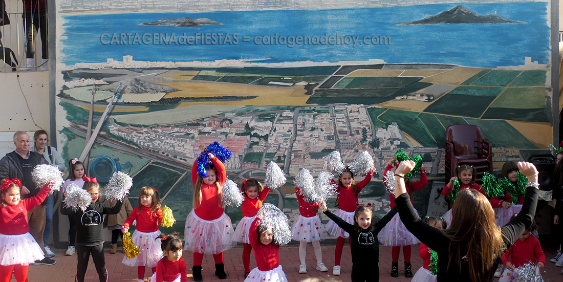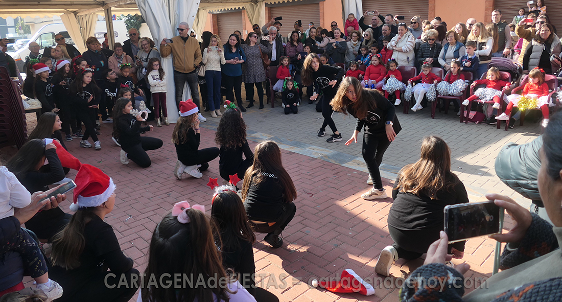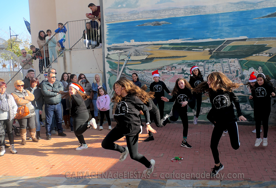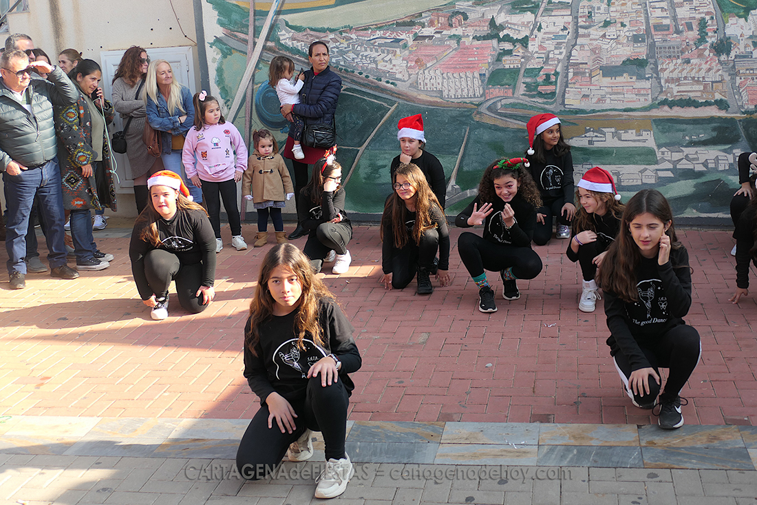 Más de una treintena de alumnas de la academia 'The Good Dance', que dirige Raquel Martínez Molina, protagonizaron, durante más de una hora, animados bailes en la plaza de la Iglesia, ante el magnífico mural del Mar Menor, dentro de la programación navideño del pueblo.