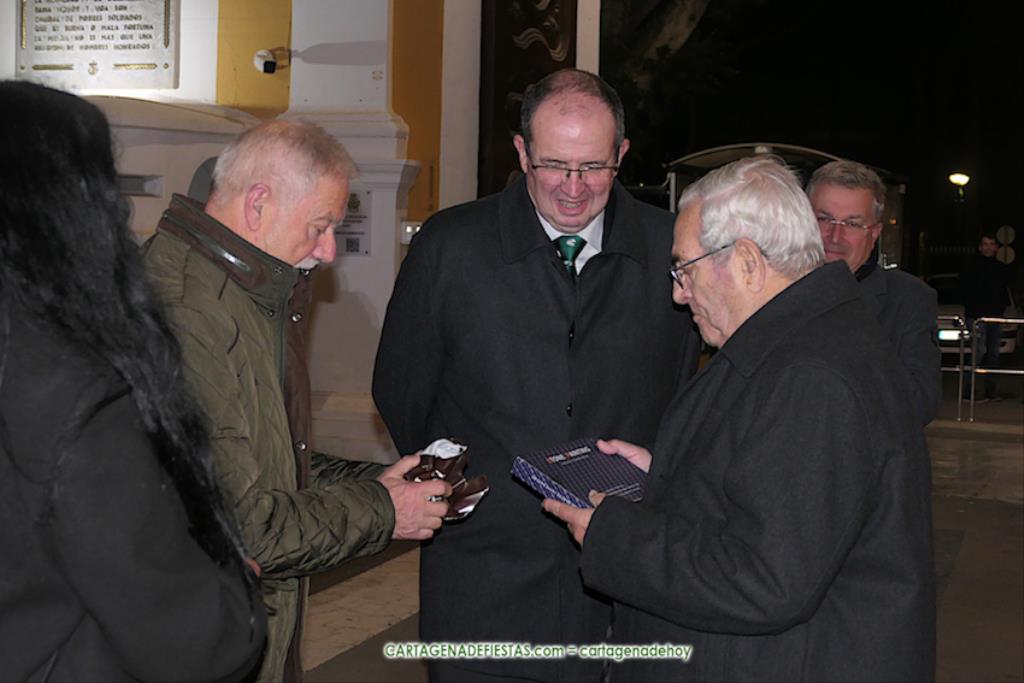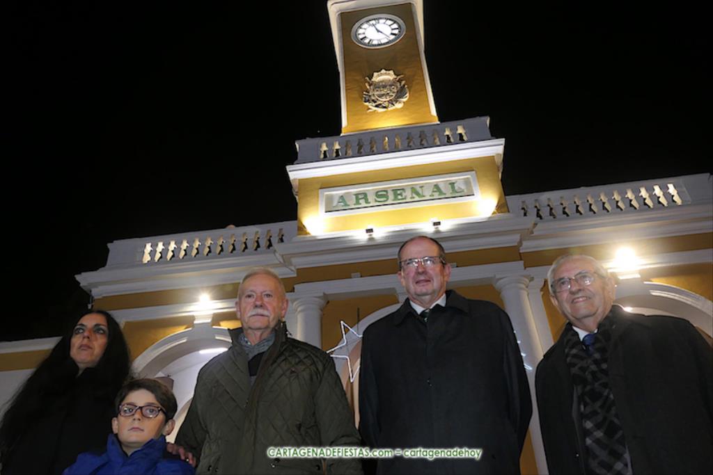 El primer capitulo fue el homenaje que desde la asociación y el Arsenal, a través del almirante, se tributó a José Antonio Carrión Araque, quien durante 60 años fue el encargado del reloj cartagenero gemelo de la Puerta del Sol, siendos ambo instalados en tiempos de Carlos III. También hubo un reconocimiento para Diego García Fernández, quien está llevando esa labor desde hace una década.