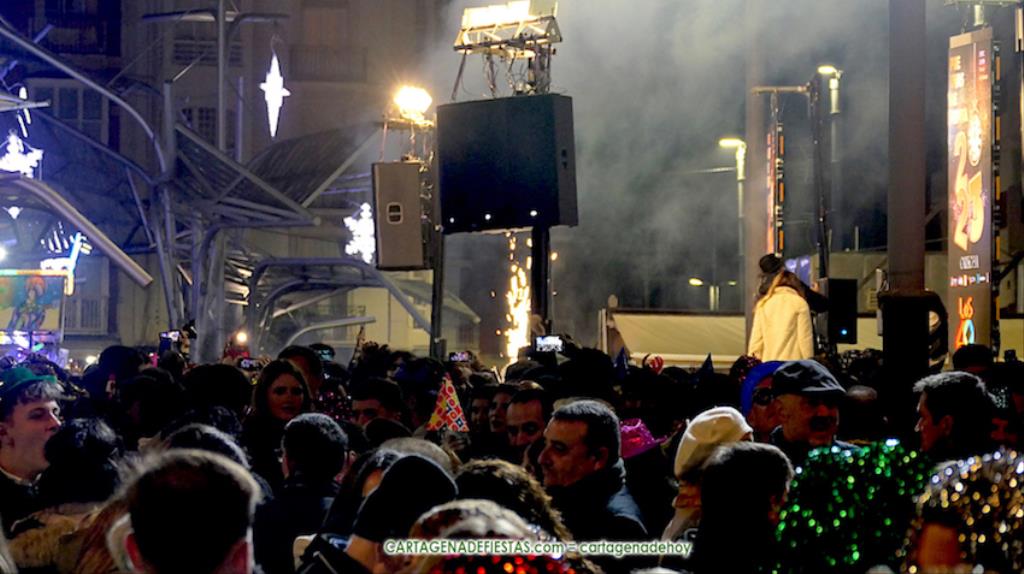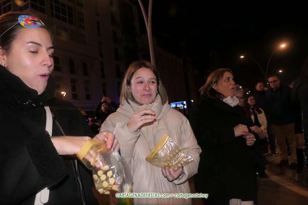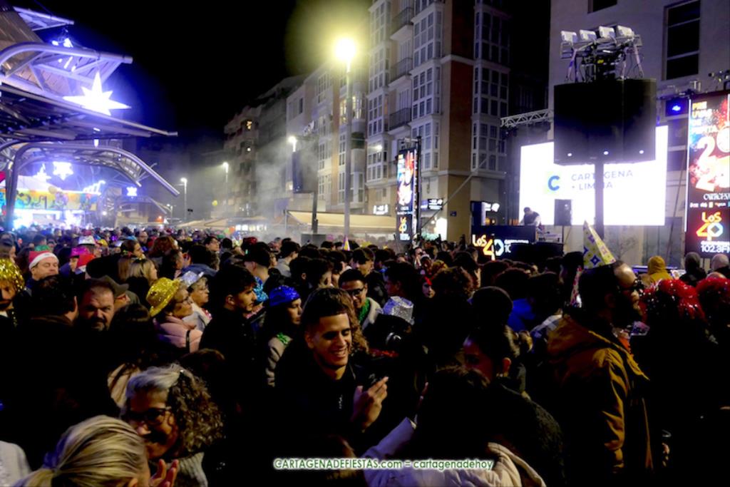 La séptima edición de la celebración del día previo a Nochevieja en Cartagena volvió a movilizar a miles de personas en la plaza del Rey y elevó la cifra de los que estaban de fiesta por el casco antiguo.