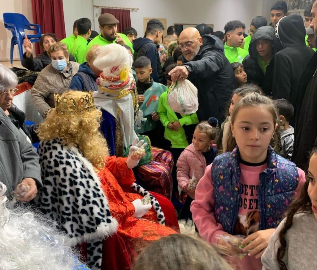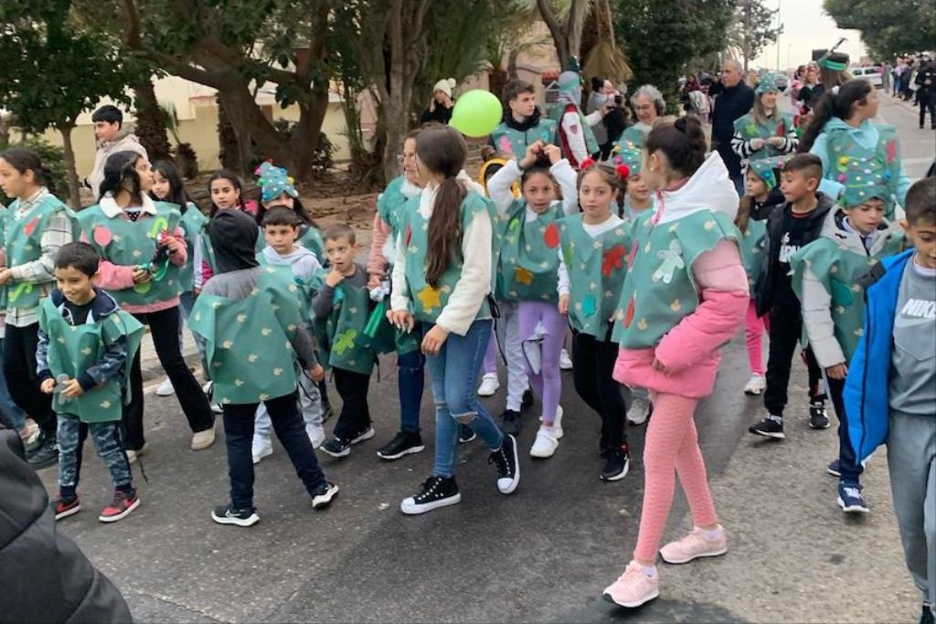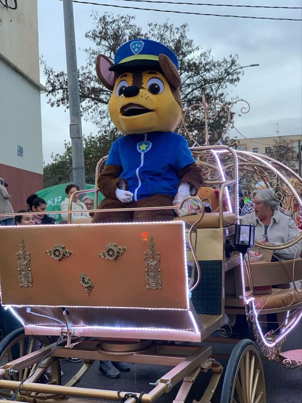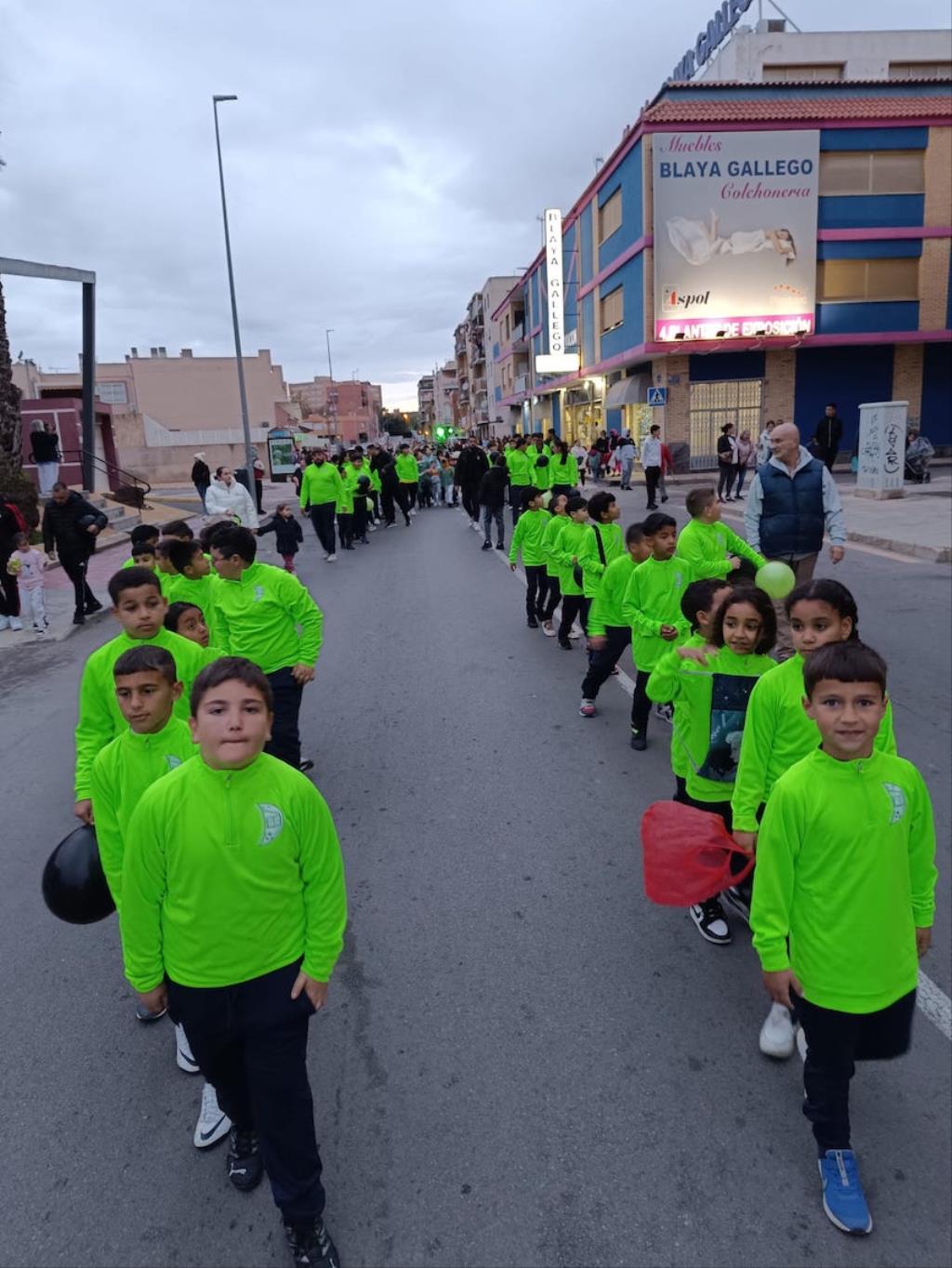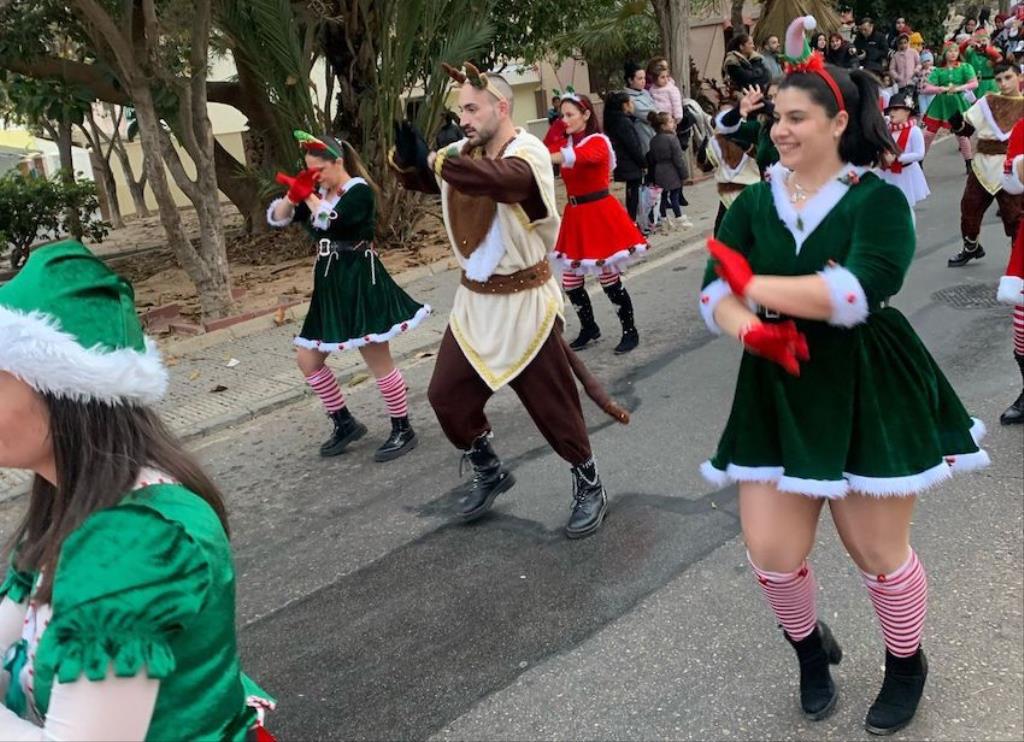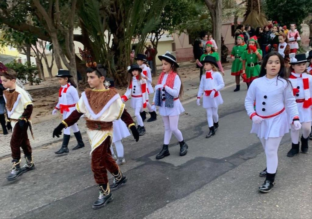 Los Magos de Oriente fueron caminando hasta el lugar de destino, el local social, mientras que los futboleros animaban con los globos del color verde identificativo del club, mientras que los escolares lo hacían con disfraces artesanales, a lo que se sumaban los Seat 600 engalanados para la ocasión, la carroza con personajes Disney y el siempre animoso y contagioso grupo coreográfico ‘Renacer’.
