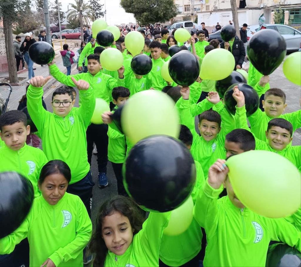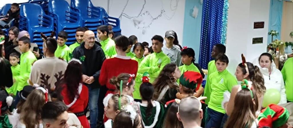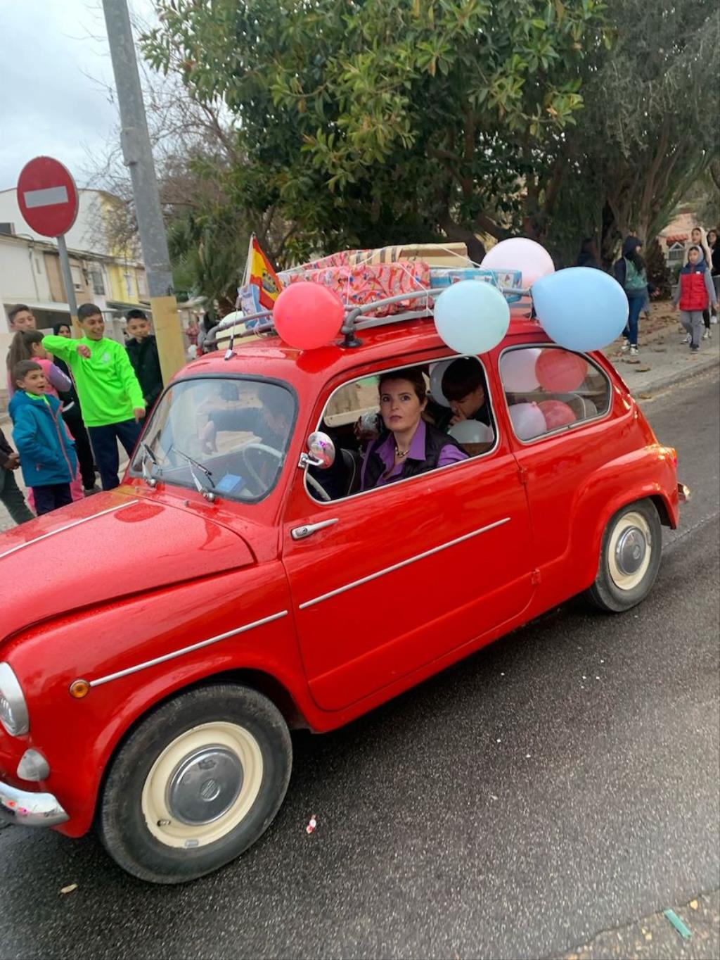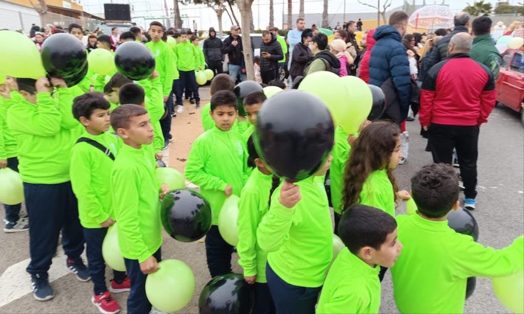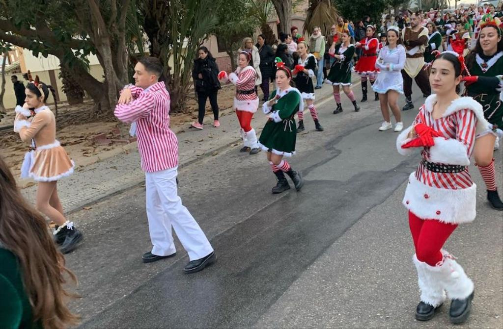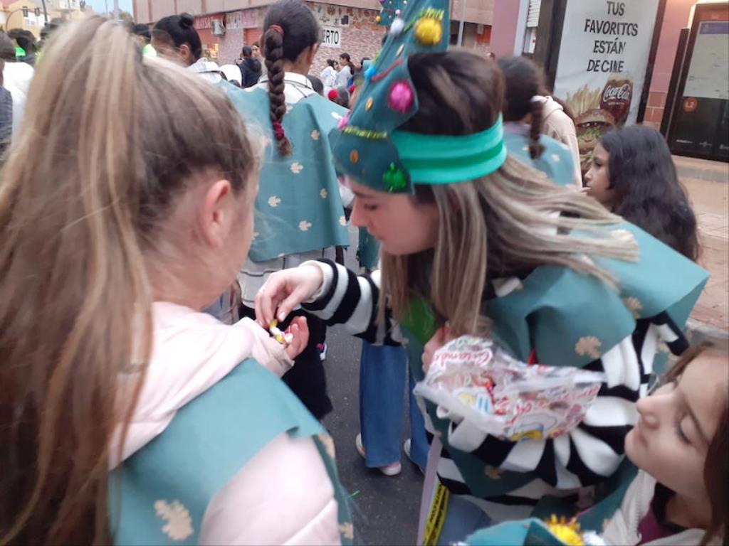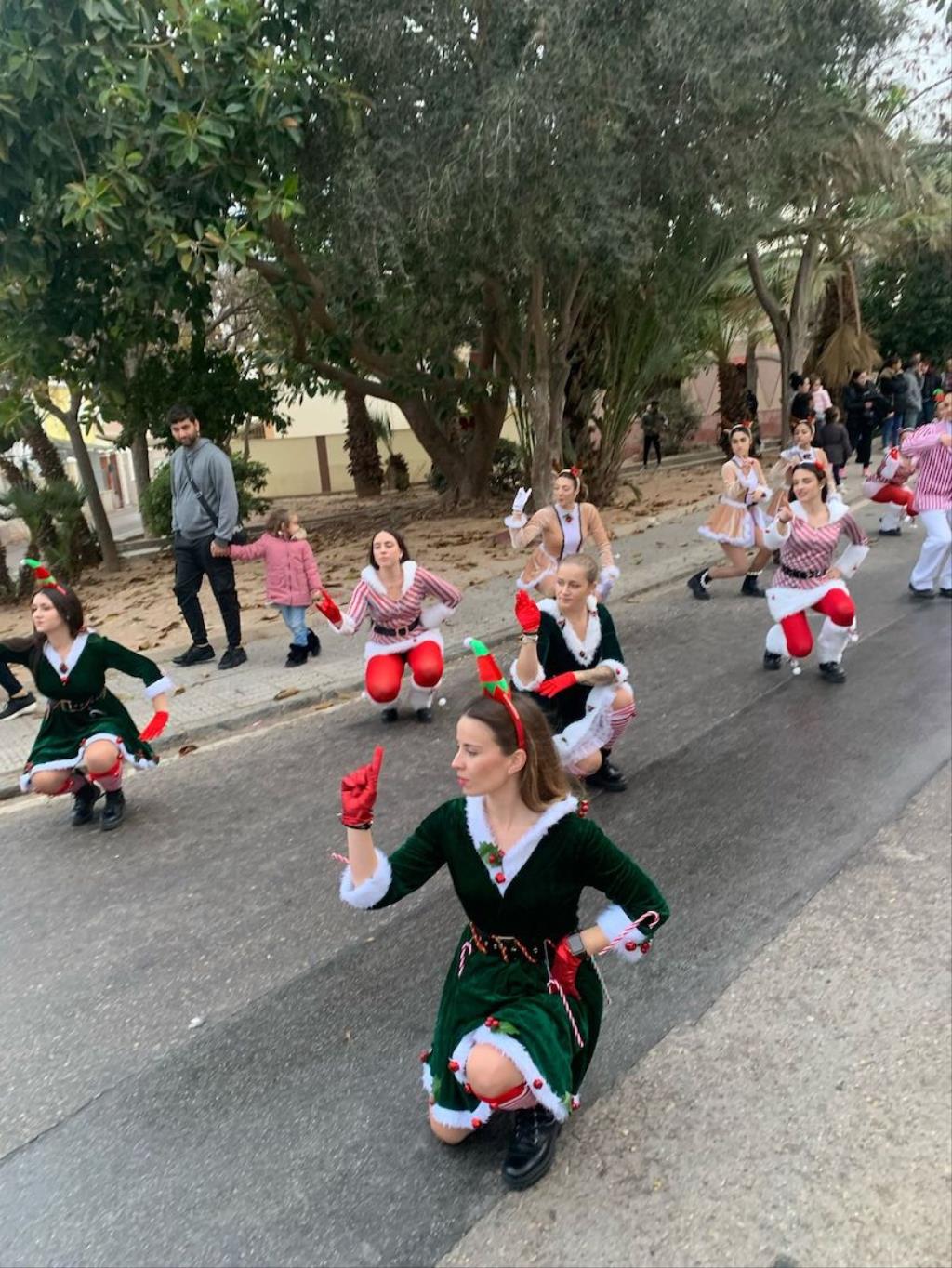 Los Magos de Oriente fueron caminando hasta el lugar de destino, el local social, mientras que los futboleros animaban con los globos del color verde identificativo del club, mientras que los escolares lo hacían con disfraces artesanales, a lo que se sumaban los Seat 600 engalanados para la ocasión, la carroza con personajes Disney y el siempre animoso y contagioso grupo coreográfico ‘Renacer’.