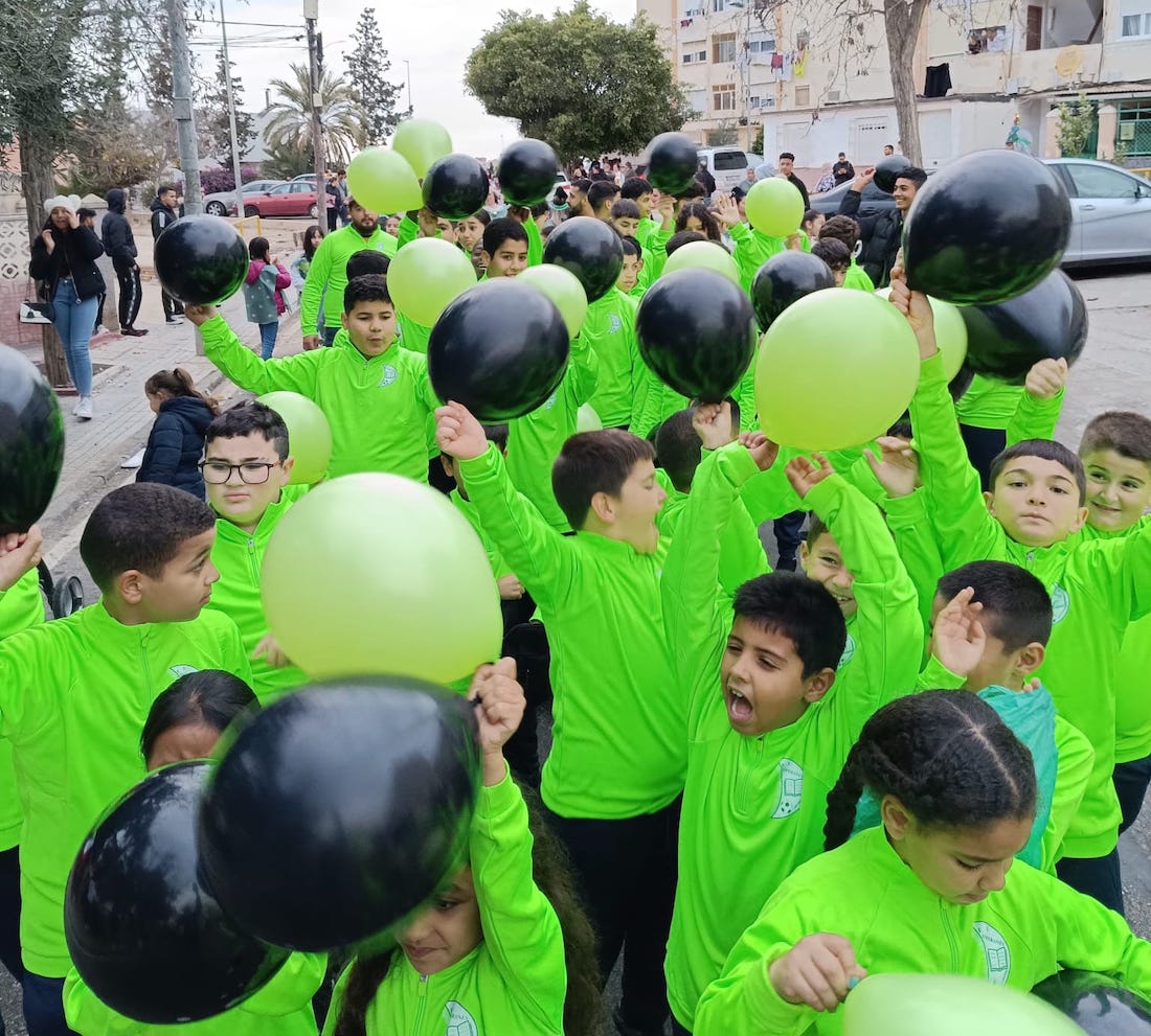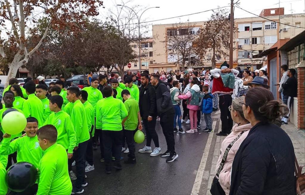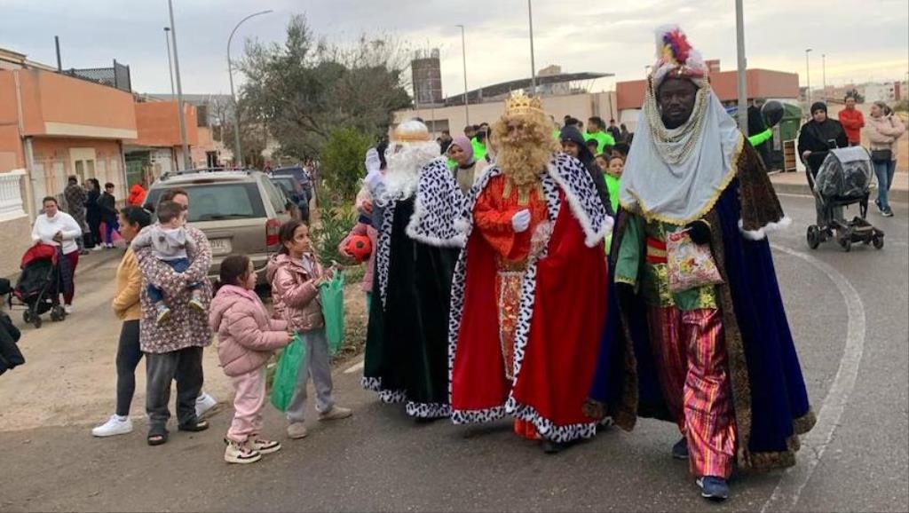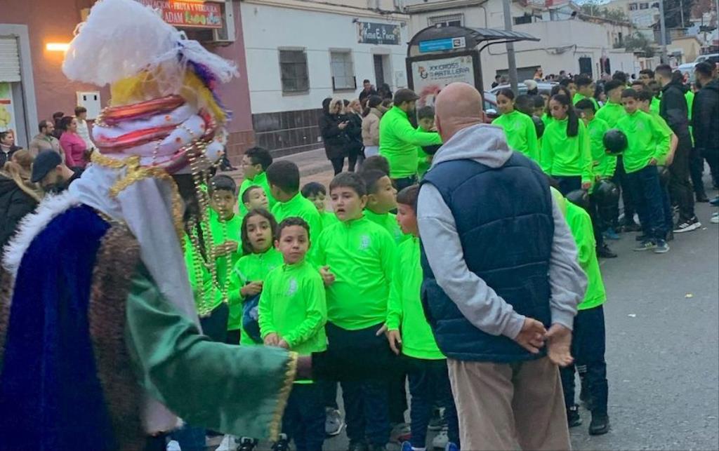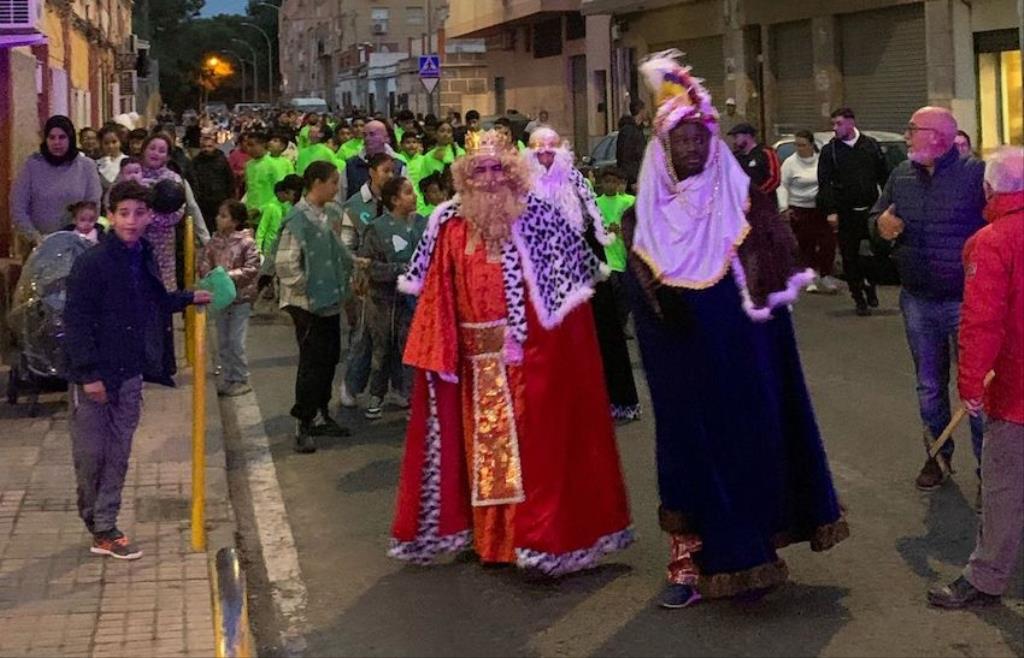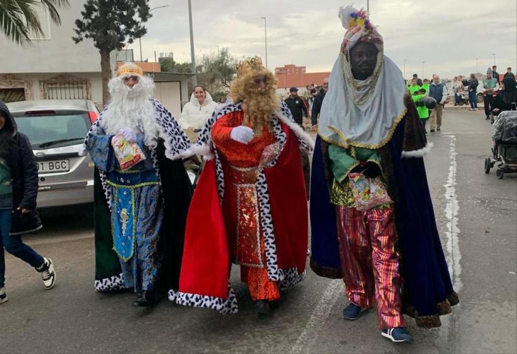 Melchor, Gaspar y Baltasar cruzaron paseando la barriada cartagenera con un séquito formado por chavales de la escuela de fútbol, bailarines de Renacer, los entrañables ‘Seiscientos’ alumnos del colegio Stella Maris…