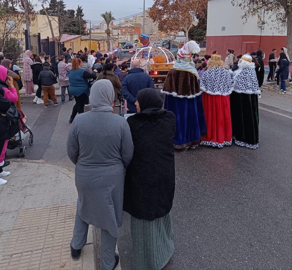 La llegada de los Magos de Oriente a la Barriada Virgen de la Caridad es, posiblemente, el acontecimiento que más personas moviliza al año en ‘Las Seiscientas’, nombre popular de la Barriada Virgen de la Caridad. Posiblemente, este año, fuesen unos seiscientos los que se activaron con el paso del desfile tanto formando parte del mismo como de espectadores.