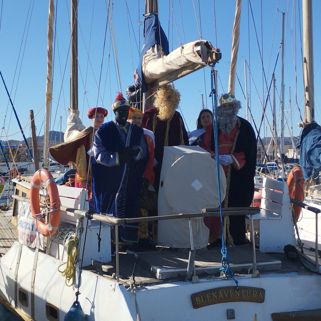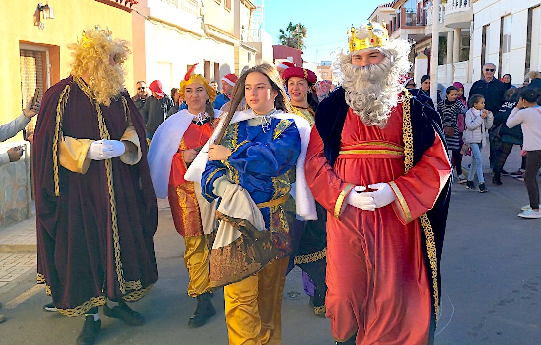 Melchor, Gaspar y Baltasar llegaron por las aguas del Mar Menor en el velero ‘Buenaventura’ hasta el club náutico, donde desembarcaron parar recorrer, junto a sus heraldos y vecinos, el pueblo hasta la plaza de la Pescadería, donde se unieron a otros alicientes, como musica e hinchables, generando un estupendo ambiente en la matinal del sábado.