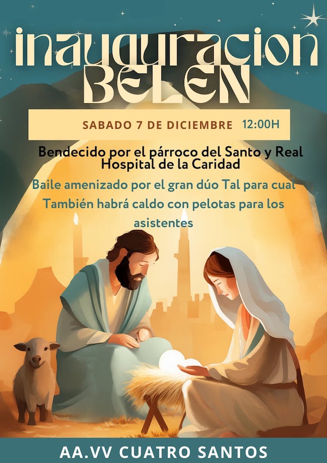 La asociación de vecinos celebra este sábado por la mañana, en el local social de la barriada, la bendición por parte del párroco del Santo y Real Hospital de la Caridad del gran nacimiento, dentro de una jornada festiva con degustación de caldo con pelotas y baile amenizado por el dúo 'Tal para cual'. Entrada libre y gratuita.