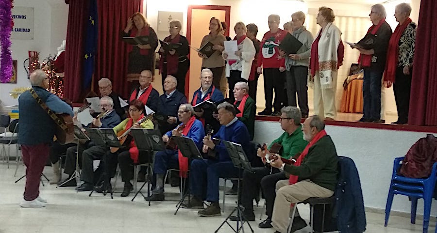 Las castañeras (y un castañero) siguen fieles a la fiesta de bienvenida navideña que tuvo lugar en el local social, donde actuaron el grupo coreográfico 'Renacer' y la rondalla y coral 'Icue', además de inaugurarse el Belén que monta la comparsa carnavalera 'Salgueiro'.
