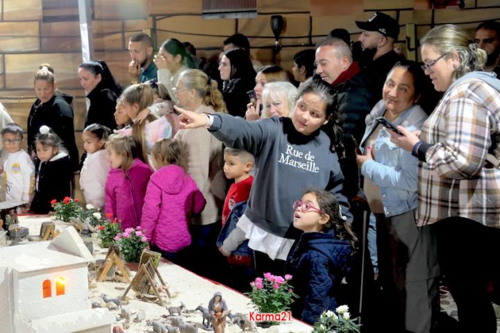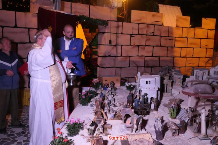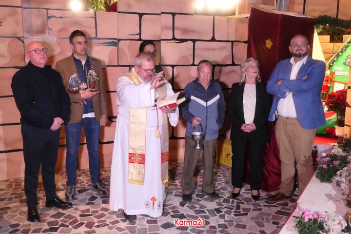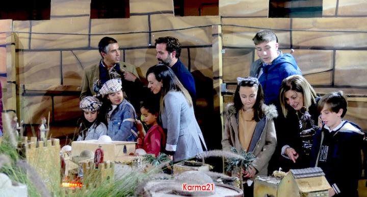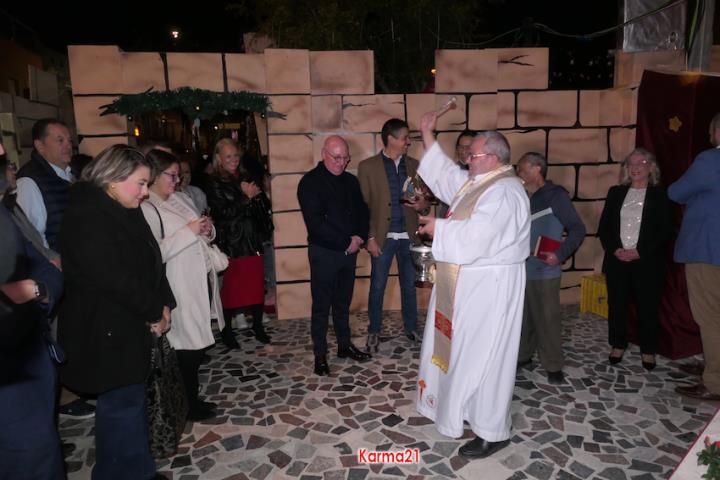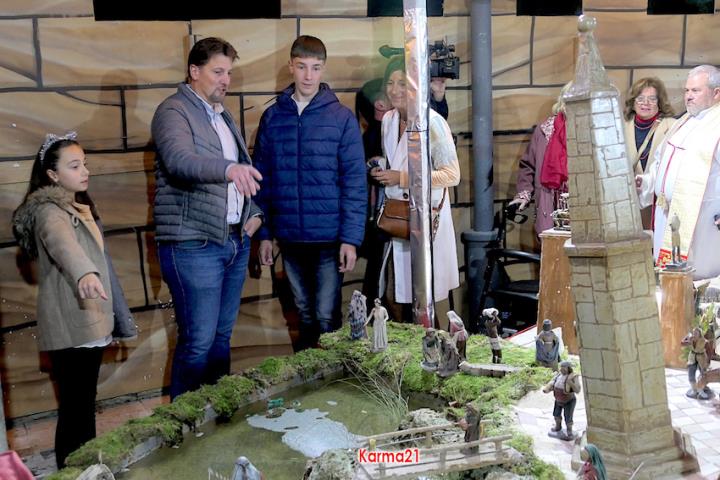 A continuación tuvo lugar la bendición del Belén por parte del párroco y la activación de sus sistema eléctrico a cargo de la madrina, comenzando a entrar decenas de vecinos para verlo.
