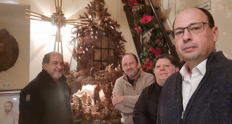 El escultor de Santa Lucía (en la foto con integrantes de la asociación belenista) intervendrá en un acto tendrá lugar esta mañana en la iglesia de Nuestra Señora de los dolores tras la eucaristía y que incluirá la entrega de distinciones de la asociación y la bendición del gran nacimiento por parte del párroco. El programa de actividades continuará hasta el 6 de enero con talleres y concurso de postres, de belenes particulares y de fachadas navideñas.