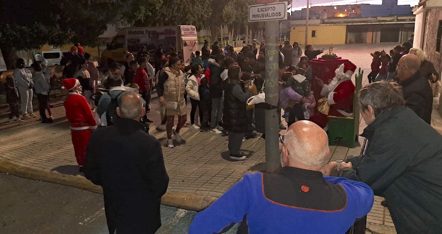 El popular personaje navideño ha mantenido un encuentro con los niños de la Barriada Virgen de la Caridad dentro de un programa para estas señaladas fechas que hoy traerá la música de la ronda y coros 'Icue' a las 18 horas en la iglesia. Después el protagonismo lo tomarán los pasteles.