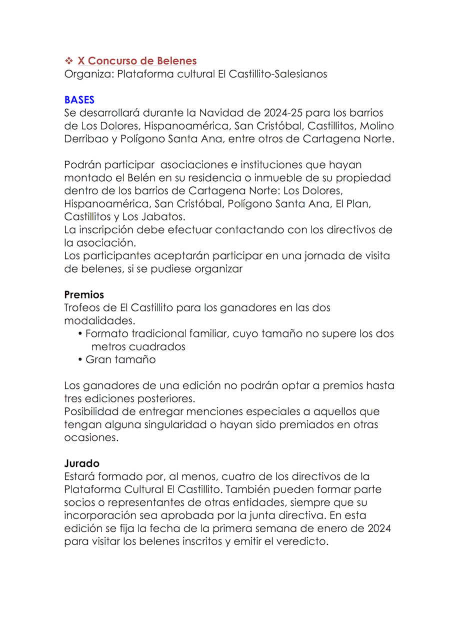 🌟 Año X del concurso de belenes de los barrios de Cartagena Norte