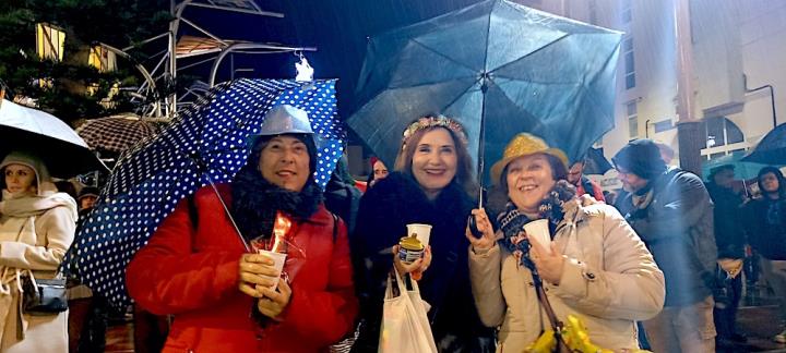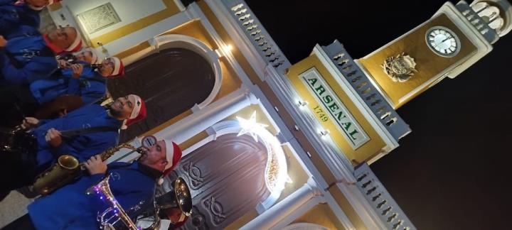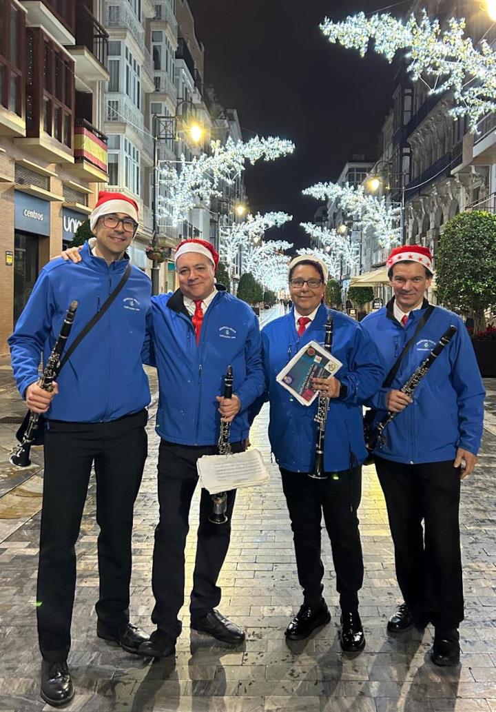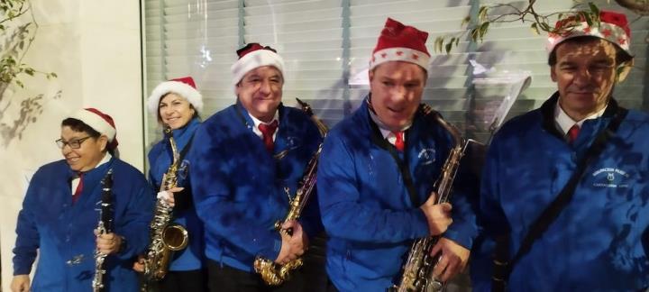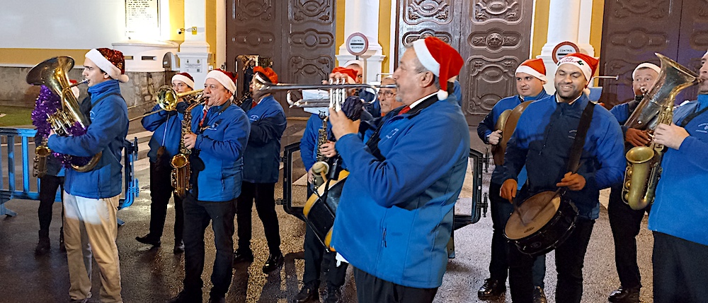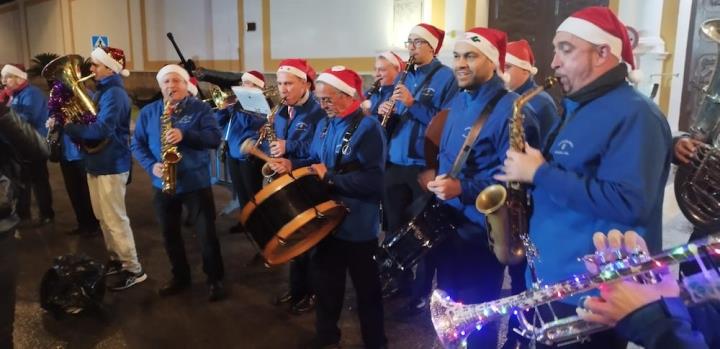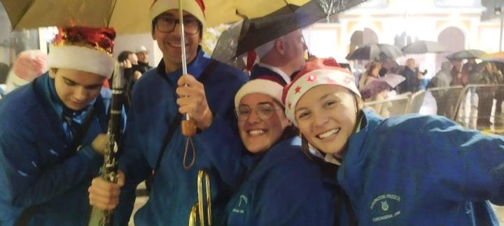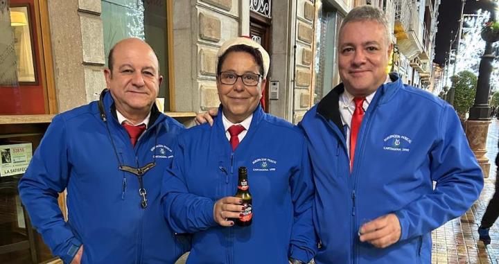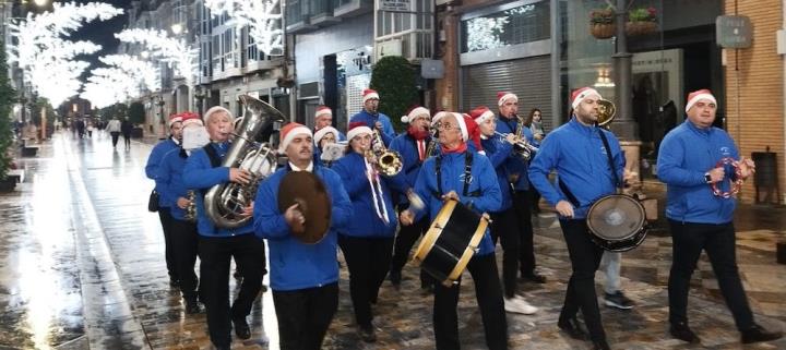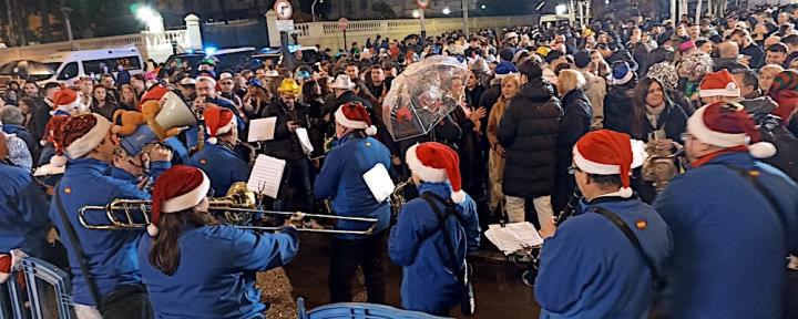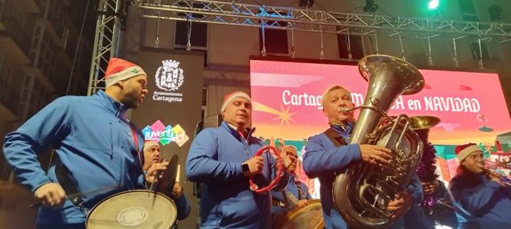 Y llegó la medianoche y, entre paraguas, comenzó la ingesta de las 12 uvas, con explosión de júbilo final que se elevó de intensidad con la estupenda labor que esa noche hace la Asociación Músico-Cultural 'Cartagena 1990' con música pachanguera, que animó los momentos previos y los posteriores, especialmente tocando sobre el escenario y mientras cruzaban desfilando abriéndose paso entre el público asistente. Por cierto, sorprendió con agrado escuchar el himno de España en versión pachanguera navideña.