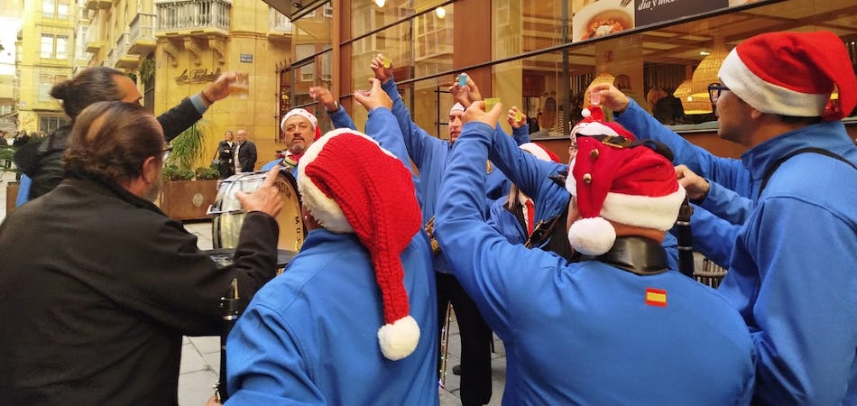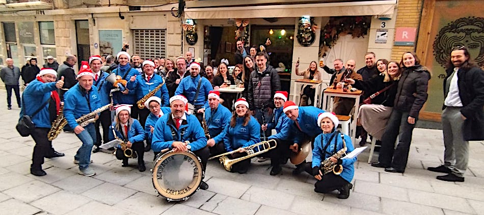 La animada canción de 'La Pegatina' no faltó (entre otras muchas de gran popularidad y ritmo) en la pachanguera ruta que la Asociación Músico-Cultural 'Cartagena 1990' llevó a cabo por el centro histórico de la ciudad en una 'Tardevieja' que recuperó ambiente cuando se alejaron las nubes que rompieron los planes matinales del último día del año 2024.