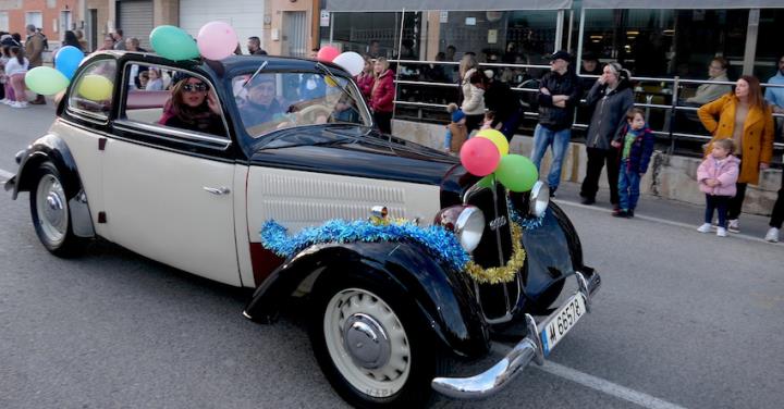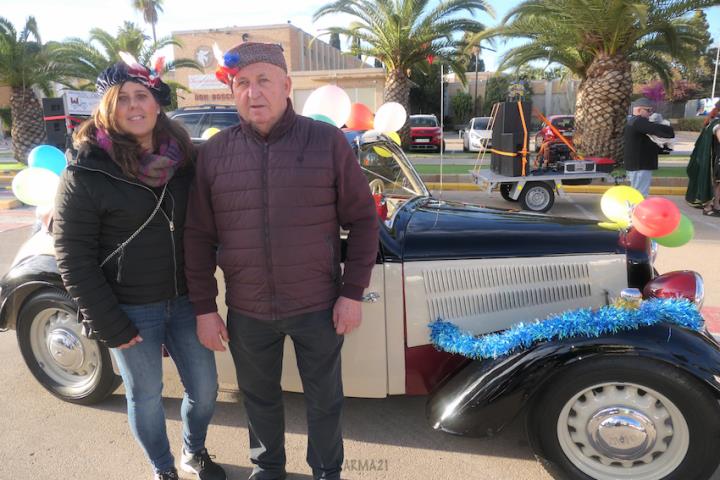 A continuación, un coche antiguo abriendo paso a un Belén viviente de la parroquia de María Auxiliadora.