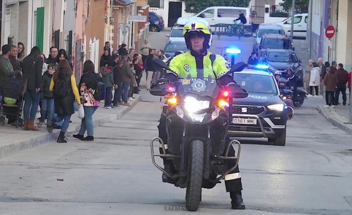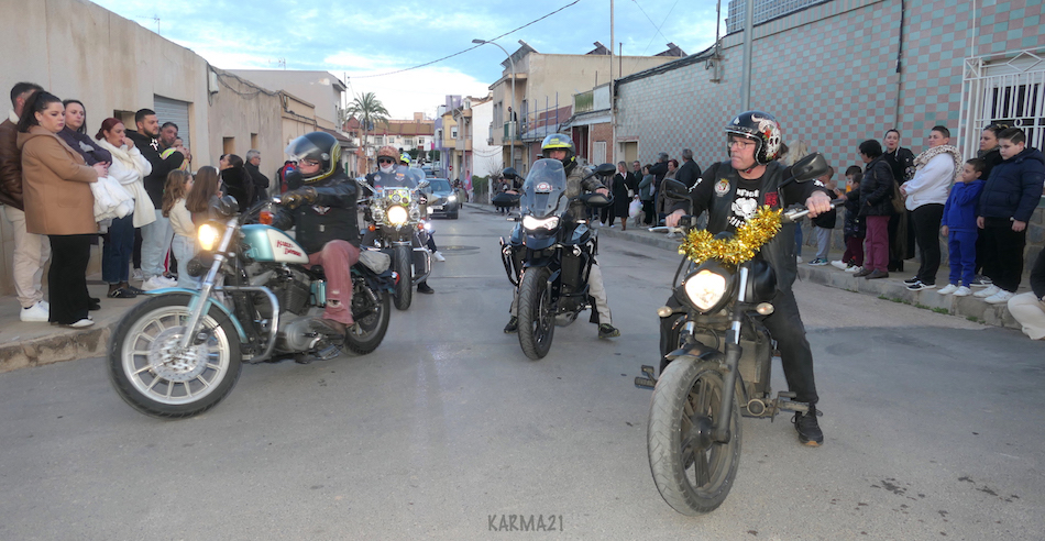 Con los grupos formados dentro del recinto de Salesianos, la cabalgata se uso en marcha con puntualidad (cinco de la tarde) tras una cuenta atrás que culminó la sirena de un coche patrulla de la Policía Local. En cabeza iban integrantes del Motoclub Cartagena, que este año cumple 70 años de andadura.