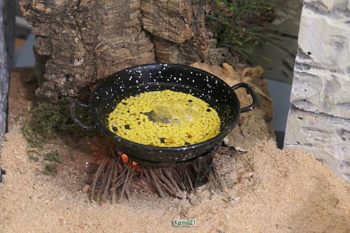 En los laterales de la reja de entrada se ubican dos extensiones. Una tiene el jardín de las delicias en el que, según el Antiguo Testamento, Dios colocó a Adán y Eva (con la manzana). En el otro lateral figura la réplica en miniatura (en fabricación artesanal) de la emblemática iglesia de San Antón, que desde este año, mirando por la puerta, permite ver la celebración de una misa en el interior. En el gran montaje también destacan detalles como el juego de la cucaña o ver una sartén 'hirviendo'.