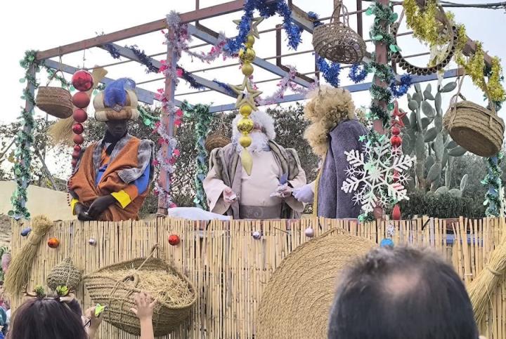 La cabalgata salió a las once de la mañana desde la Asociación de Vecinos con dos carrozas. Una, con Melchor, Gaspar y Baltasar y, otra, con madres y niños vestidos de pastorcillos.