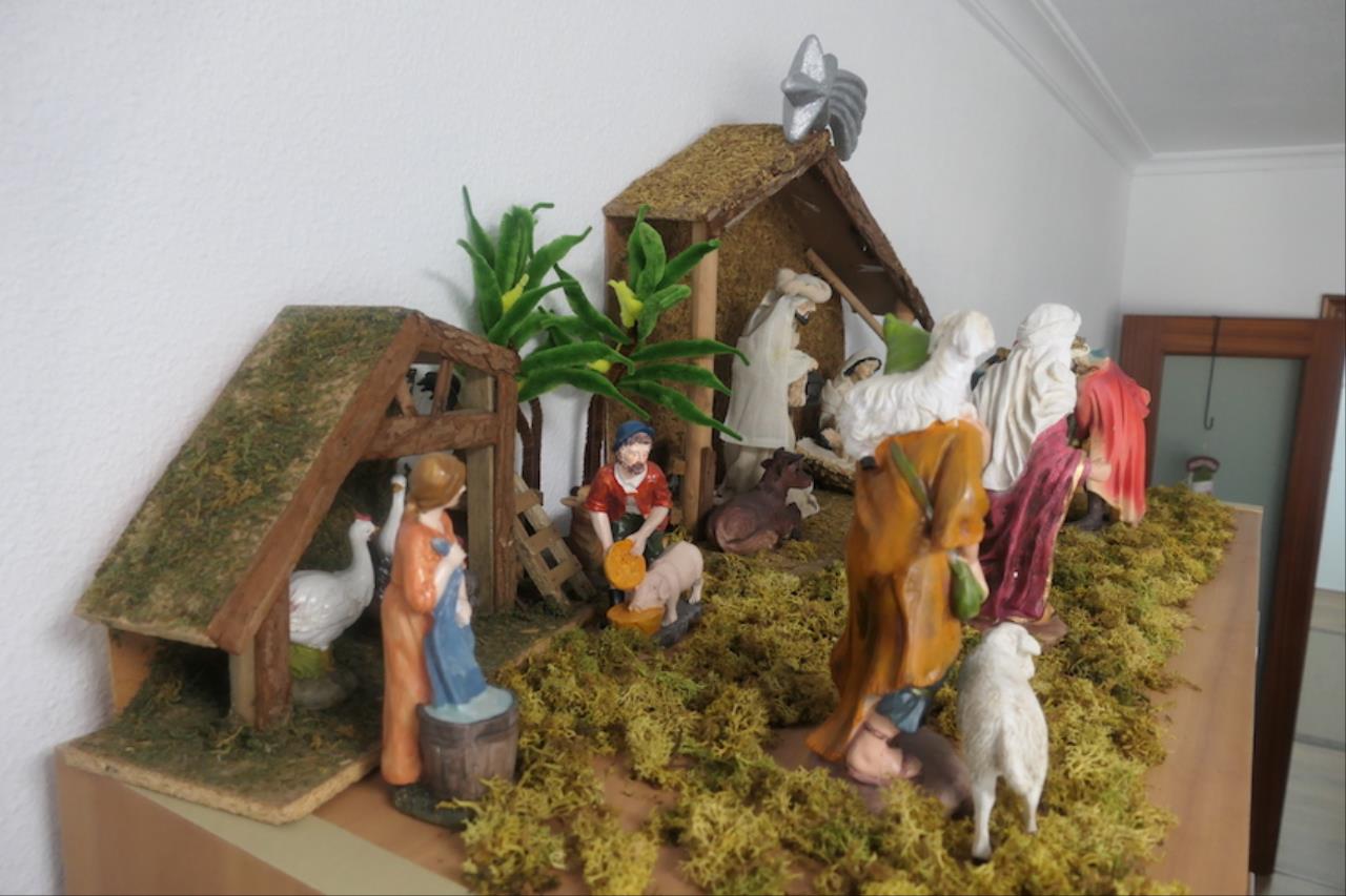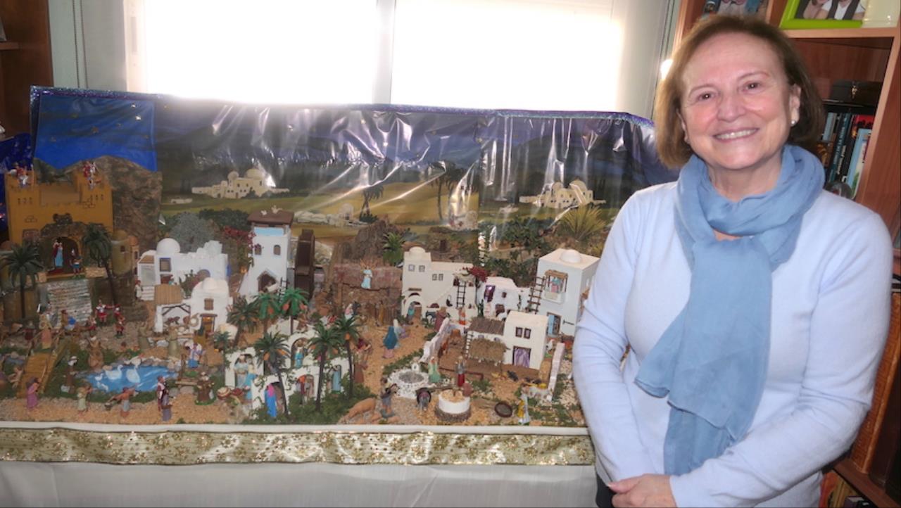María del Carmen Linares, del Polígono Santa Ana, lleva más de treinta años montando el belén, habiendo creado la afición en sus siguientes generaciones de la familia. Ella es la diseñadora y el marido, Francisco Gutiérrez, ha construido de forma artesanal las edificaciones, primero en corcho y después en barro. Las figuras son proporcionadas. Además, el belenismo en este hogar se potencia con un portal de mayor tamaño que luce en el salón, donde también hay un niño Jesús que la familia saca en Nochebuena.
