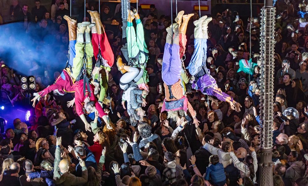 Peter Pan y su pandilla hicieron las delicias de cientos de cartageneros que se acercaron a la plaza del Ayuntamiento para disfrutar de un espectáculo aéreo de acrobacias, música y fuegos artificiales con el que arrancan estas fiestas.